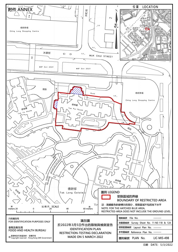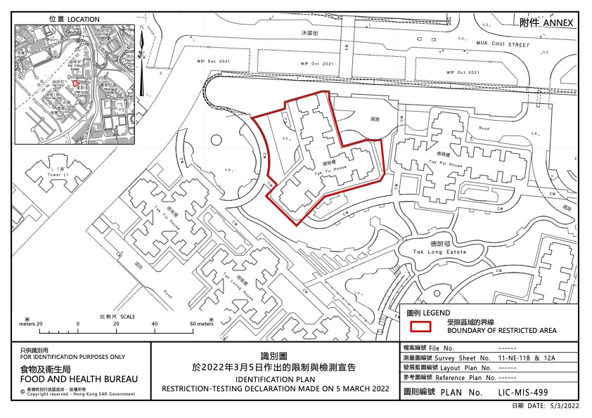 政府今日(5日)引用《預防及控制疾病(對若干人士強制檢測)規例》(第599J章),自下午1時起圍封九龍城德朗邨德珮樓和德瑜樓進行強檢。政府目標是在明日(6日)上午約9時完成德瑜樓行動、中午12時完成德瑜樓行動,視乎檢測結果,行動或會延長。