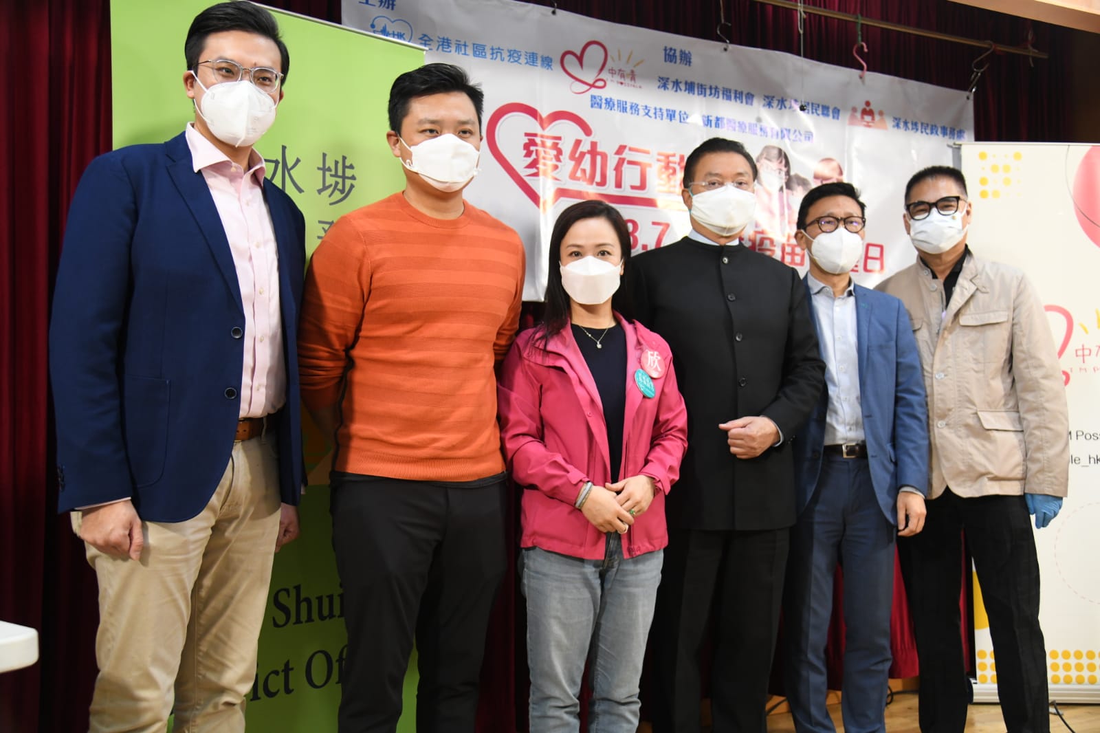「全港社區抗疫連線」總召集人陳振彬、公務員事務局局長聶德權、深水埗民政事務專員黃昕然、立法會議員鄭泳舜與梁文廣、南區民政事務專員鄭港涌、南區抗疫連線總義工隊隊長陳南坡、大埔民政事務專員陳巧敏、社會福利署大埔及北區福利專員任滿河、大埔社區抗疫連線副主席陳笑權和「心中有晴」主席高永文出席啟動儀式,陳振彬表示「愛幼行動・3.7新冠疫苗接種日」於港九新界三個注射點已有近800名人士預約,連線希望藉活動喚起社會關注,讓更多機構和團體參與和開始推廣疫苗接種的活動,全力提升全港疫苗接種率。