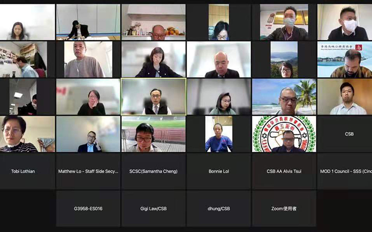 公務員事務局局長聶德權今日(11日)與4個公務員中央評議會和4個主要跨部門公務員團體代表會面,闡述政府整體抗疫策略以及政府僱員參與抗疫工作的安排,同時聽取職方代表的意見及關注。