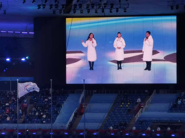 2022北京冬殘奧會閉幕式將於13日晚20:00在北京國家體育場鳥巢舉行。閉幕式導演和手語主持人正在介紹閉幕禮儀和注意事項。
