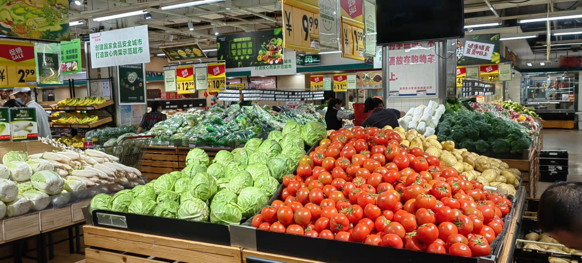 上午9點,華潤萬家羅湖春風店,生鮮區各種蔬菜種類豐富。