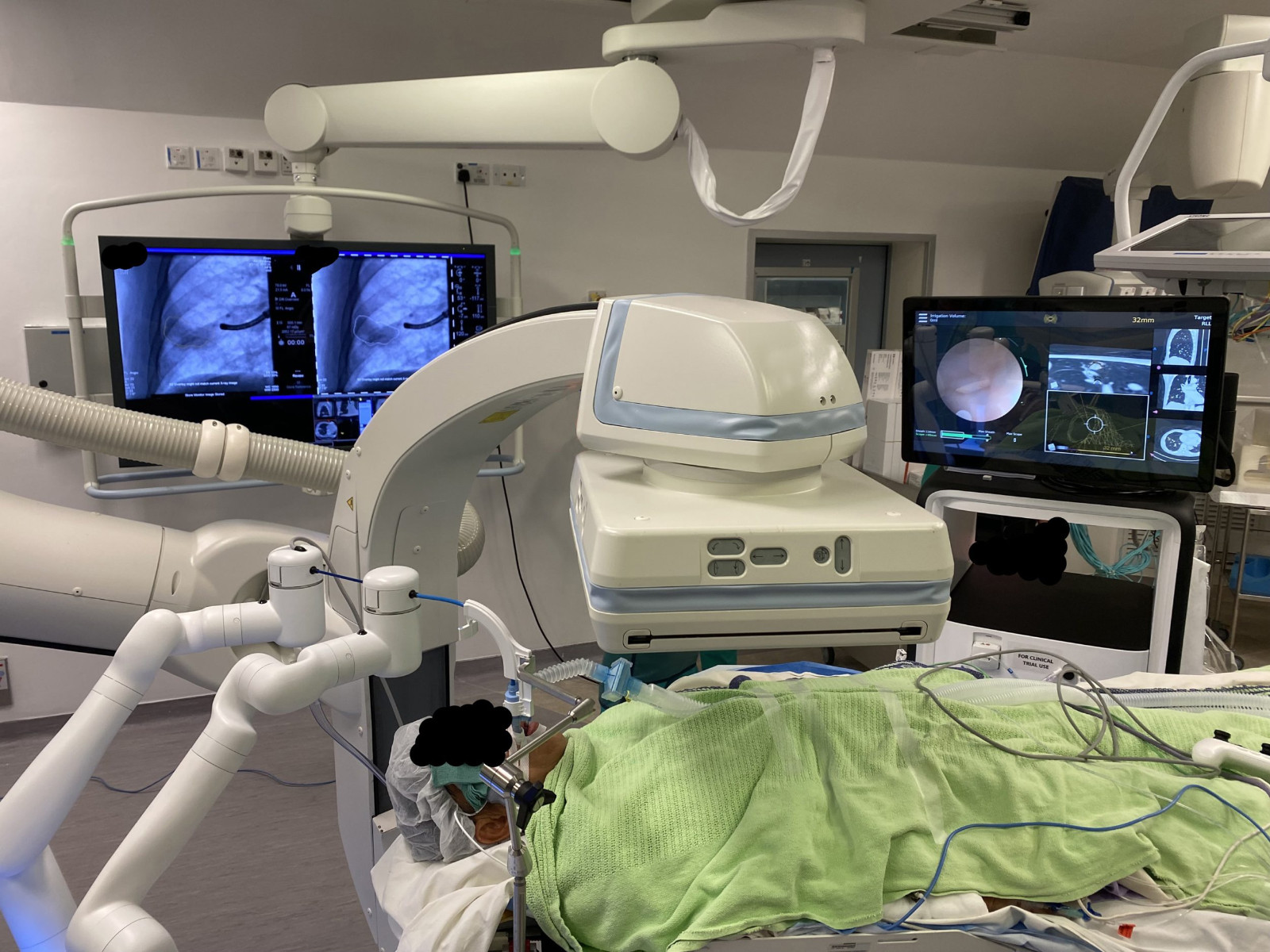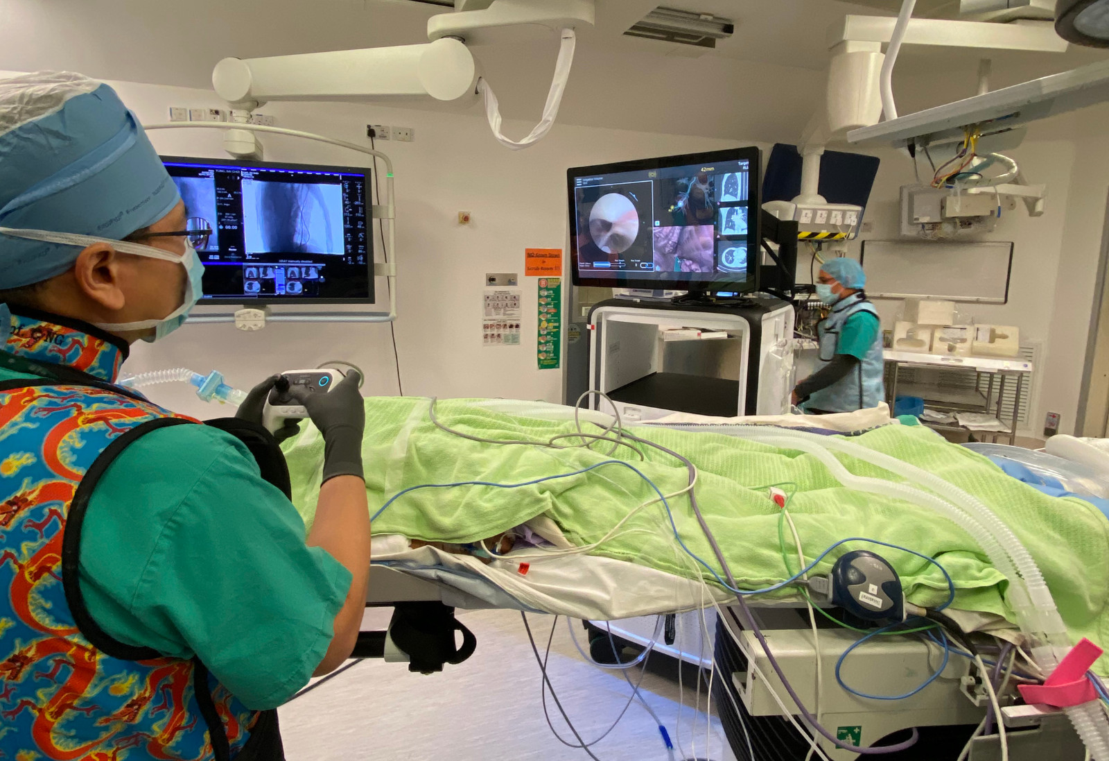 香港中文大學指醫學院於去年12月開始利用混合手術室機械人輔助支氣管鏡,至今已為18名肺病病人完成檢查手術,而機械人輔助支氣管鏡正處於臨床測試階段,目標於全球完成1200例。