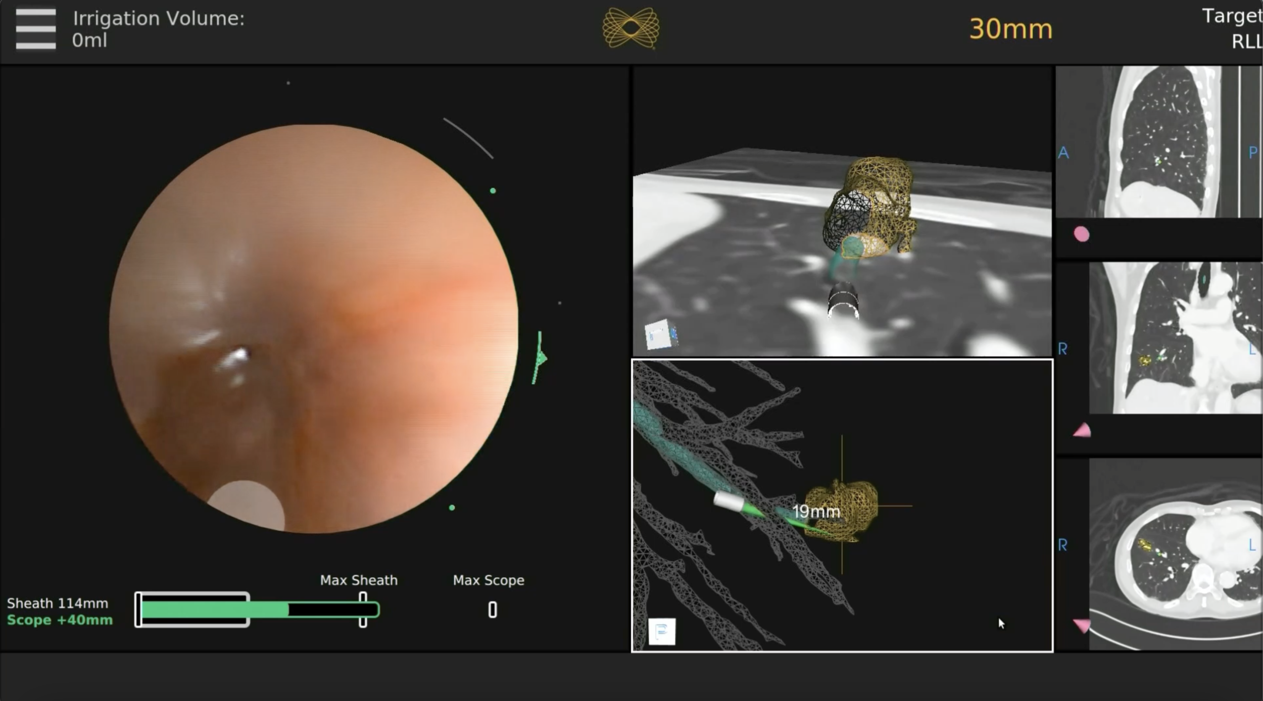 新型的機械人輔助支氣管鏡檢查使用實時光學影像和電磁定位,於狹窄而複雜的氣管進行導航。