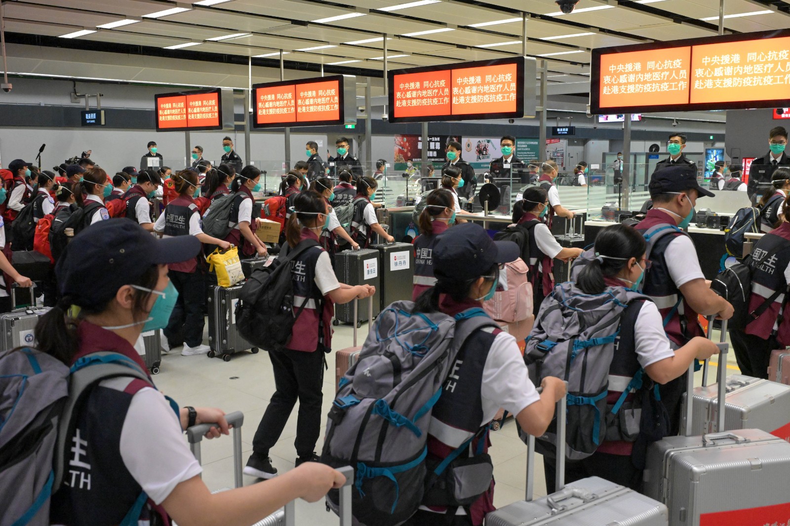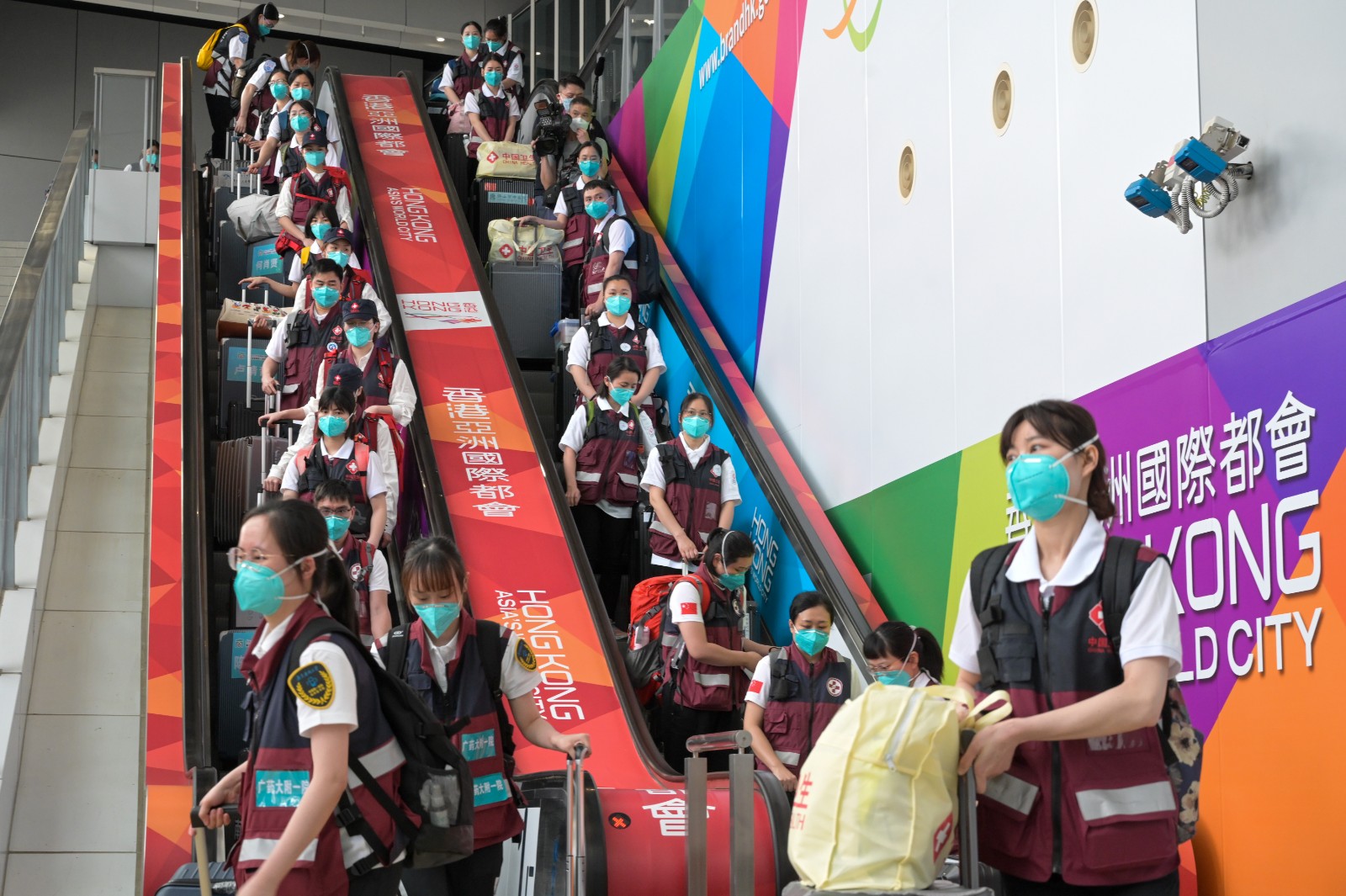 據悉,今日抵港的醫療團隊包括40多名醫生及240多名醫護人員,他們抵埠後將會到亞博館社區治療設施為新冠患者進行治療。