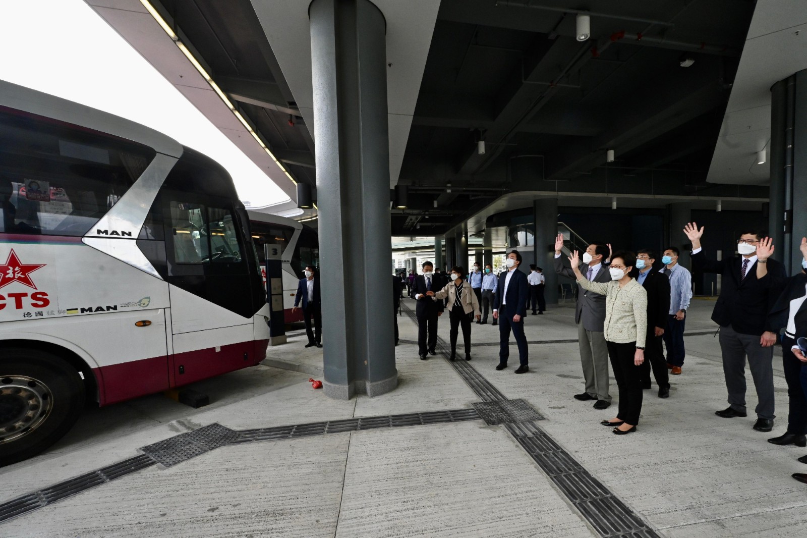 新一批由約300名醫護人員組成的內地援港醫療隊,今日(16日)下午經蓮塘-香園圍口岸抵達本港,他們將在港參與治療新冠患者的工作,行政長官林鄭月娥及醫管局主席范鴻齡到口岸迎接。