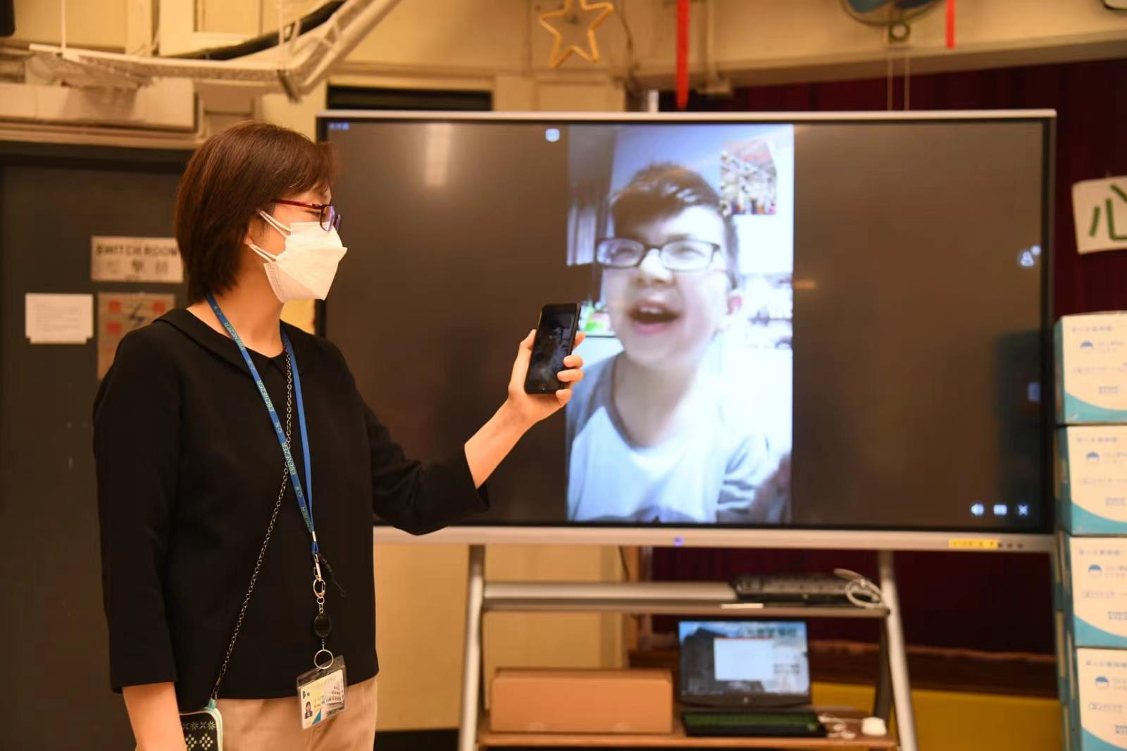 「心光恩望學校」學生林博言透過視頻接受訪問時稱,在家收到義工隊送來的物資感到非常感恩。