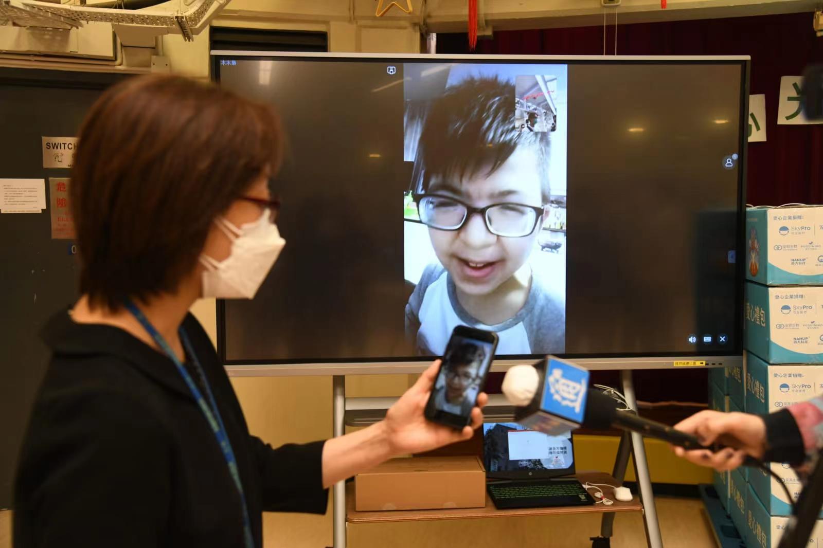「心光恩望學校」一名小學生林博言透過視頻接受訪問時稱,在家收到義工隊送來的物資感到非常感恩;林母稱小朋友因不能上學,又不敢到樓下公園活動,已導致出現情緒問題,希望疫情早點過去,社會恢復正常。( 記者:李銘欣 攝影:蔡啟文)