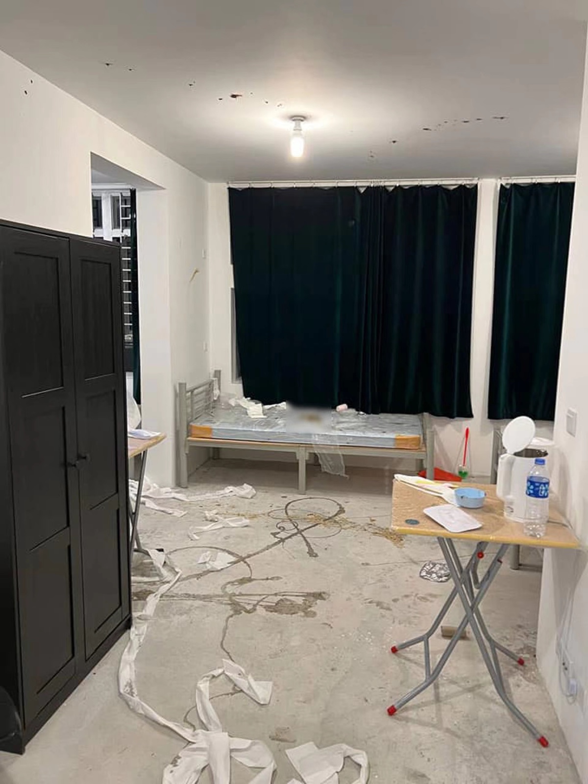 昨日(16日),有網民於facebook群組「全港抗疫分享交流區」貼出相片指,有入住粉嶺皇后山隔離營的隔離者離營後,單位內的地下、床墊,甚至是牆壁及天花亦有疑為大小便污漬,疑是有人刻意抹上。