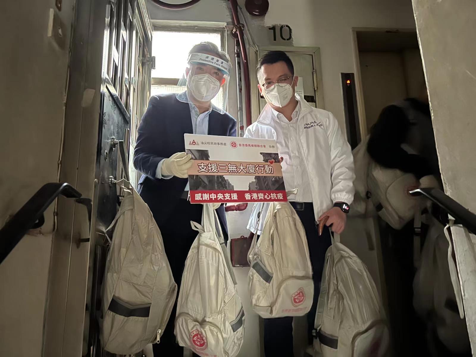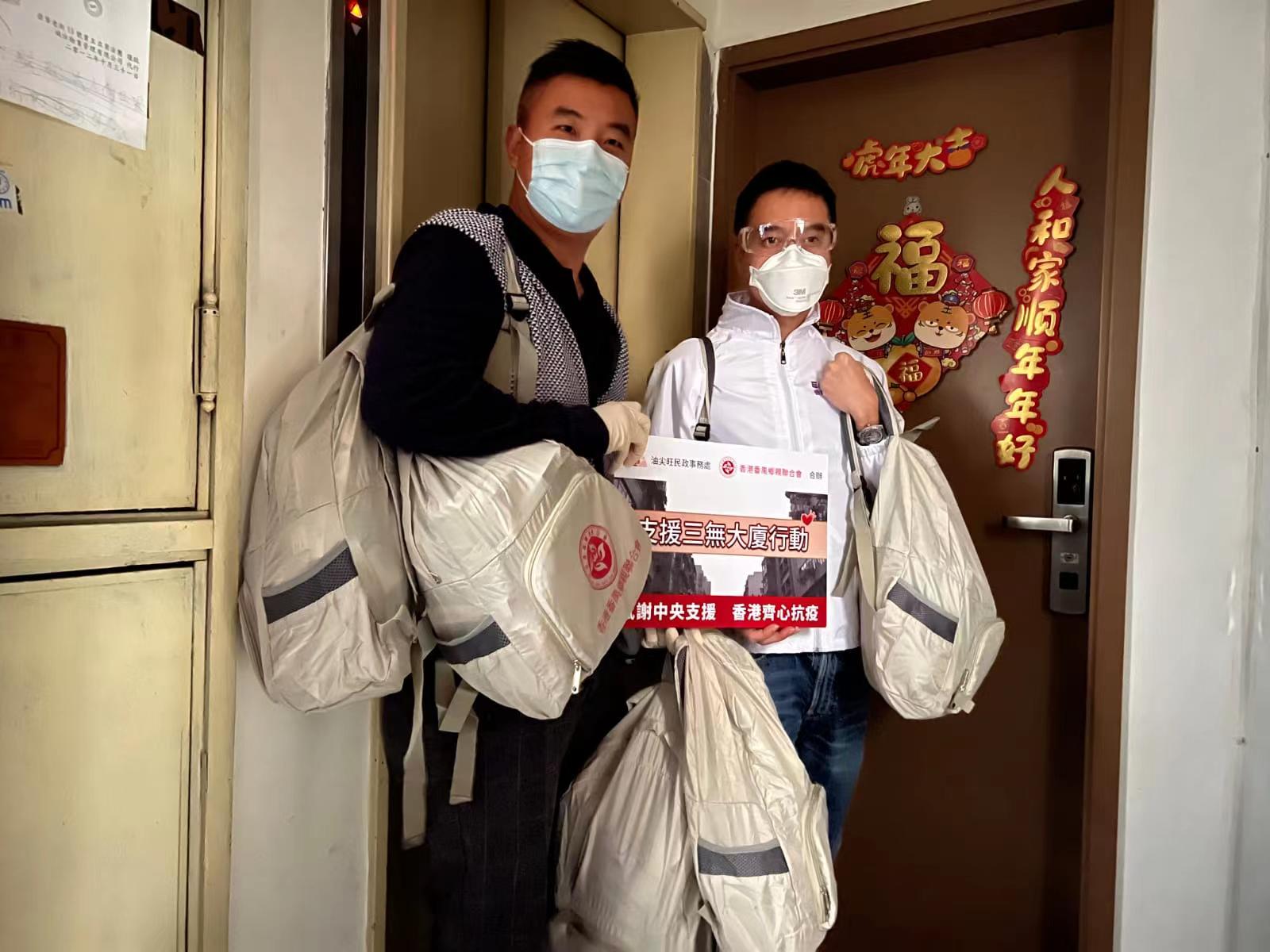 「三無大廈」沒有任何管理,客觀環境一般較不理想,今日(23日)油尖旺民政事務處及香港番禺鄉親聯合會主動向污水呈陽性的「三無大廈」住戶派發抗疫物資包。勞工及福利局副局長何啟明、油尖旺民政專員余健強、香港番禺鄉親聯合會主席李民強、第一副主席高一鳴、秘書長李世華,廣東省政協委員林至頴、番禺區政協委員邱偉祺、番禺區政協委員張偉權、梧州市政協委員莫繡安、青年匯聚副主席張家峰及葉琼玉身體力行參與是次抗疫行動。派發物資包括快速檢測套裝、中央援港抗疫物資連花清瘟膠囊、口罩、食物及清潔物品等。