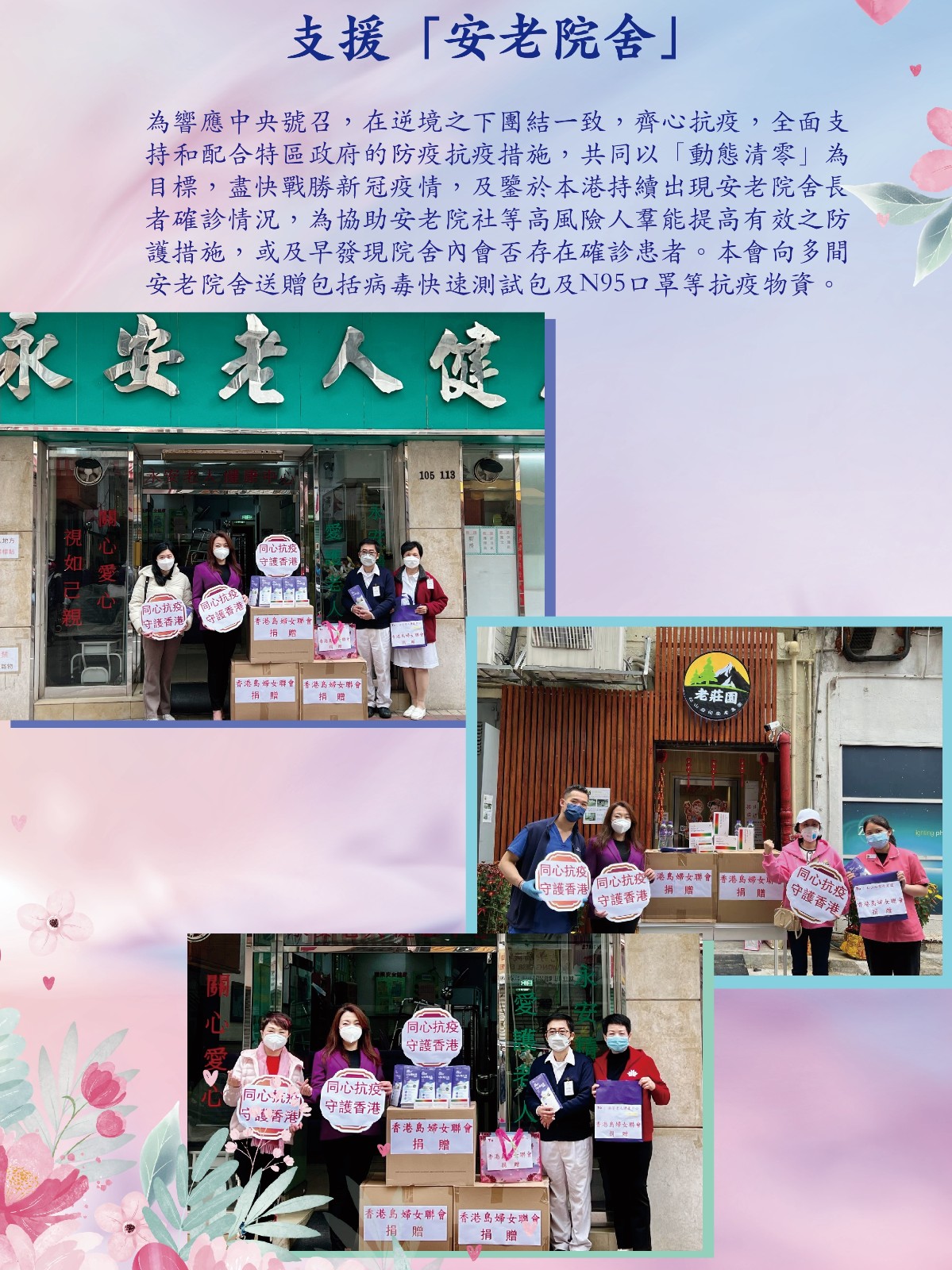 「向前線醫護人員致敬愛心相冊」記錄了本會早前發起之慶祝香港回歸25周年「賀三八婦女節」暨愛心石頭畫傳愛——向前綫醫護人員致敬活動之部分優秀畫作、本會近期為支援前線清潔保安人員、安老院舍、抗疫的士司機等各社群人士作出之抗疫工作、以及本會「與愛同行義工團」,「暖聲暖心電話義工隊」之關愛社區送暖行動。
