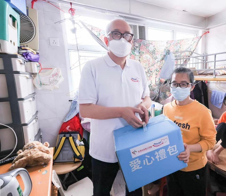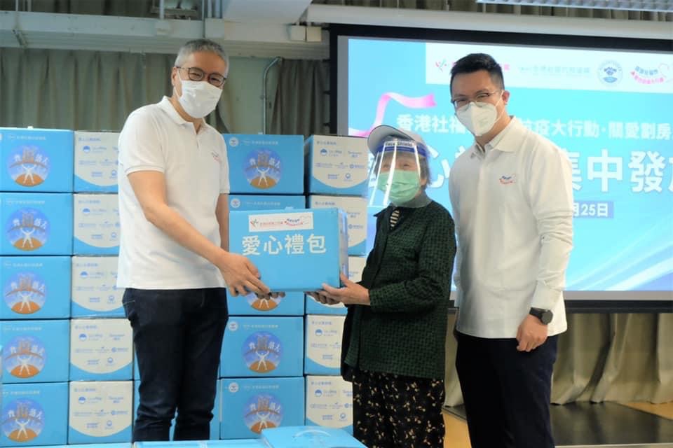 香港社福界聯合抗疫大行動透露單親協會、社區組織協會、樂群社會服務處、沙田居民協會、新家園協會、油尖旺民生關注會、新界社團聯會、無國界社工、義務工作發展局等團體召集義工在深水埗、油尖旺作試點,向劏房戶、獨居長者、單親家庭等派發「防疫愛心包」 ;包括口罩、搓手液、快速測試劑、蓮花清瘟膠囊等防疫物資及桶面、罐頭、蔬菜等,累計143萬件。