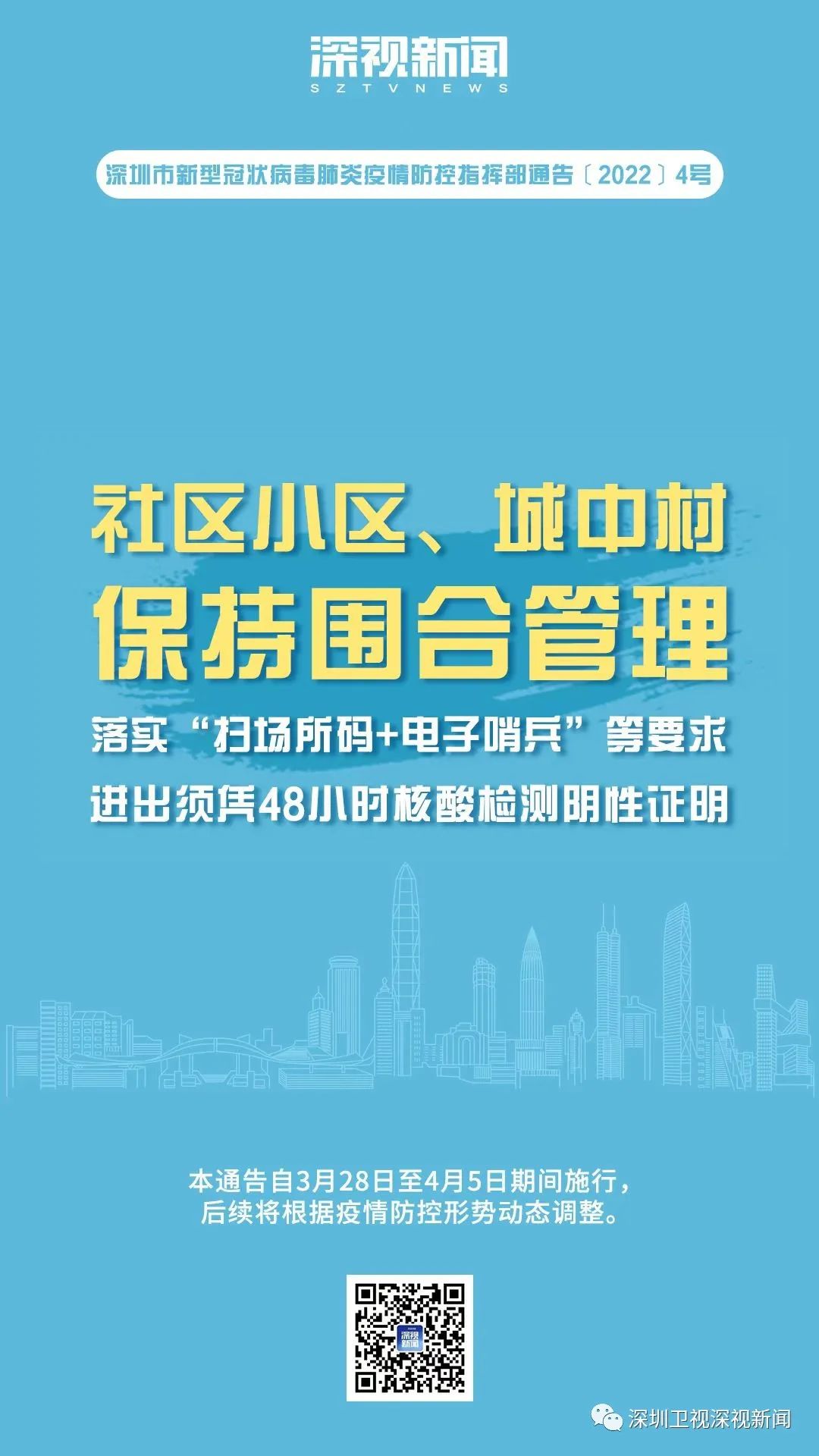 周日(3月27日)晚上9點半,深圳市疫情防控指揮部發布第4號通告,對疫情防控措施作出最新安排部署。