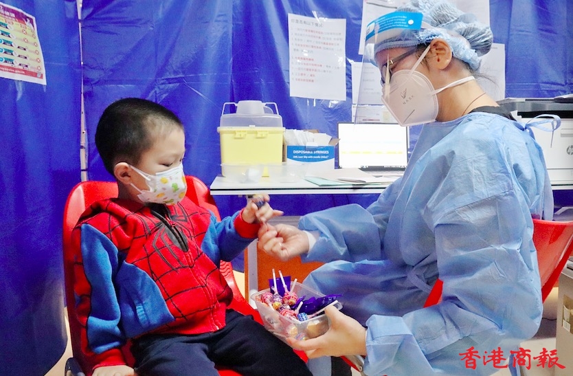 4歲的Felix接種後稱:「唔痛、唔驚。」Felix媽媽表示,現時疫情嚴重,希望加強小朋友的抵抗力,她又指,自己一家人均已接種疫苗,沒有出現任何副作用,故亦放心帶小朋友前來打針。