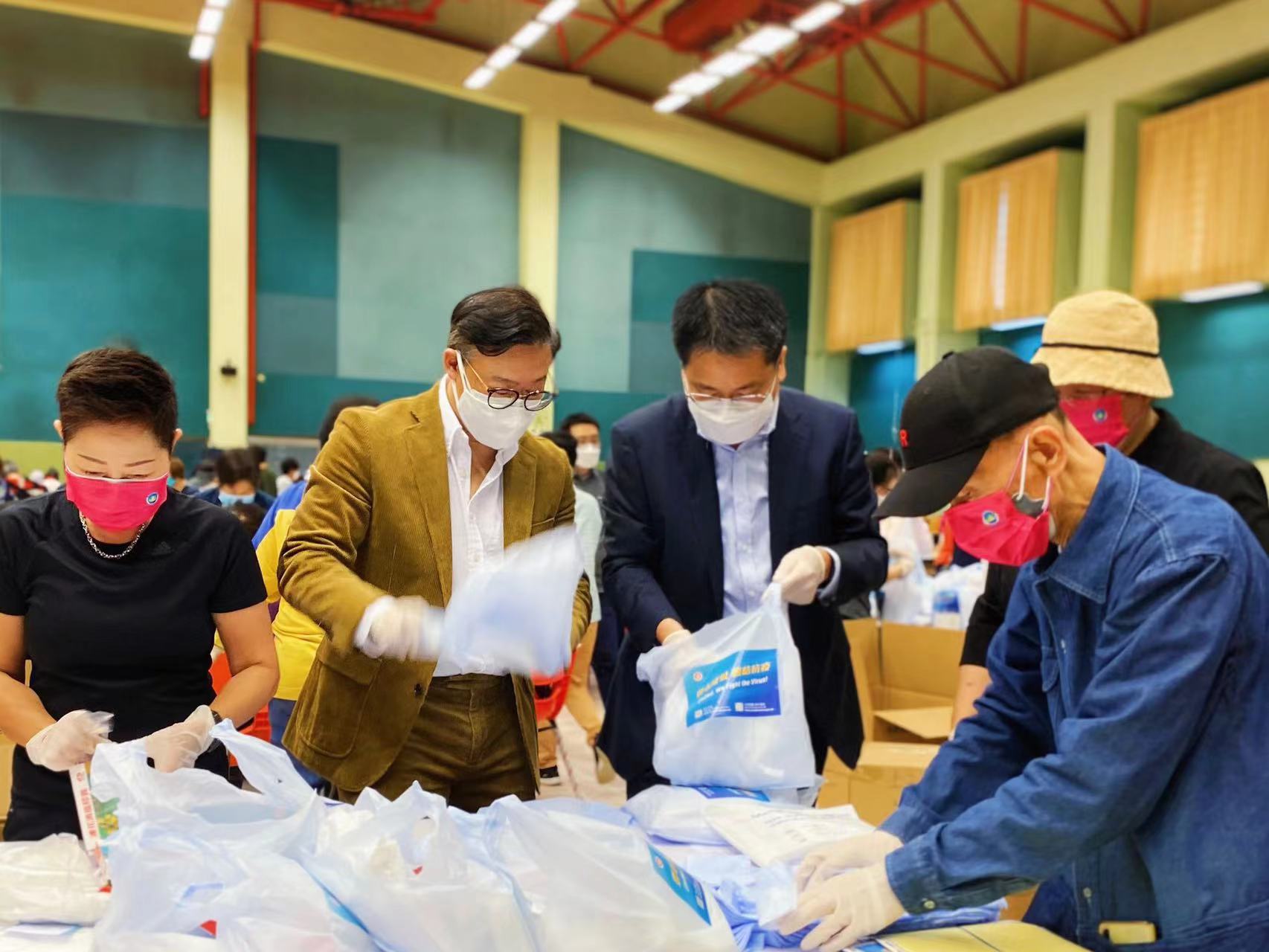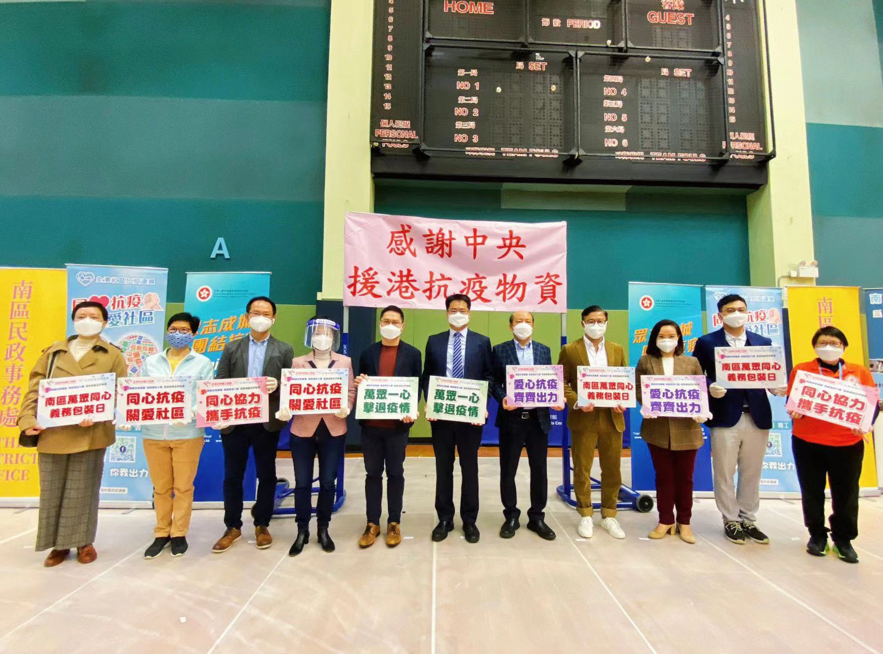 先前政府宣布下月初將向全港300萬個家庭派發防疫包,全港抗疫義工同盟 、南區抗疫連線收到政府邀請動員義工參與包裝及派送工作,連線積極響應。南區抗疫連線今日起一連2日動員逾500位義工協助包裝工作。南區民政處民政專員鄭港涌、全港抗疫義工同盟港島義工團團長朱立威、南區抗疫愛心義工隊總隊長陳南坡、立法會議員葉劉淑儀、張國鈞、陳學鋒、陳家珮、南區區議員林玉珍及梁進今日亦響應政府行動,到南區鴨脷洲體育館進行包裝工作,和在場義工加油打氣。