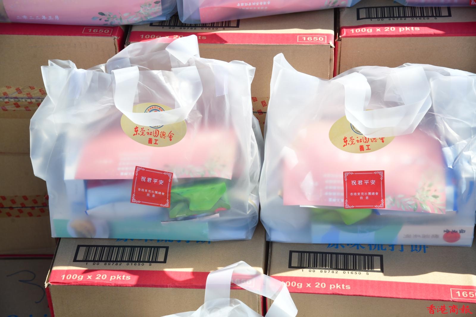 愛心禮包在早前已分別送抵位於青衣、新田、粉嶺和港珠澳口岸的方艙醫院,在交接儀式結束後,各方艙醫院陸續向患者分發愛心禮包。