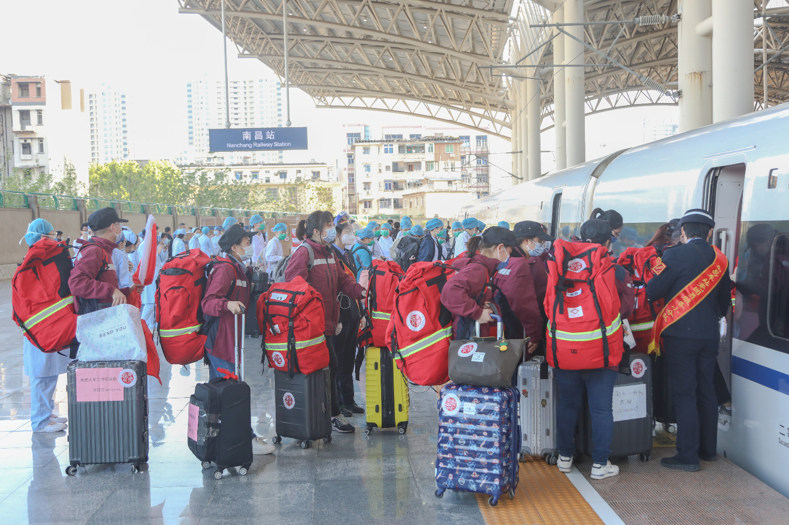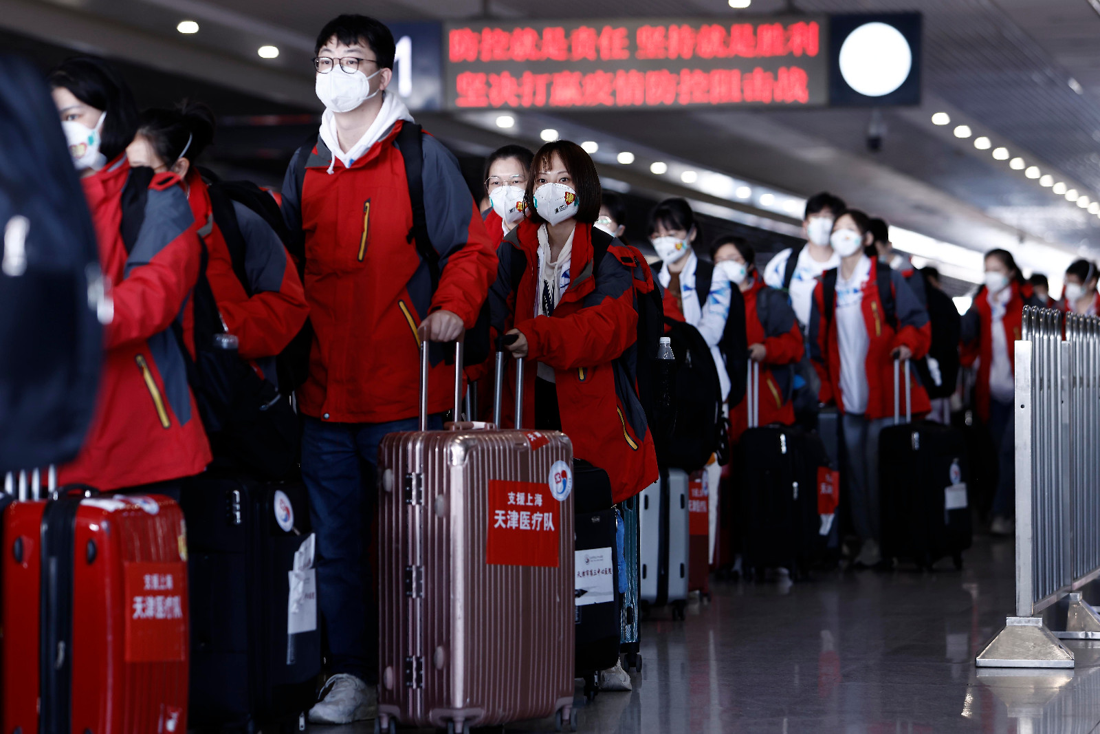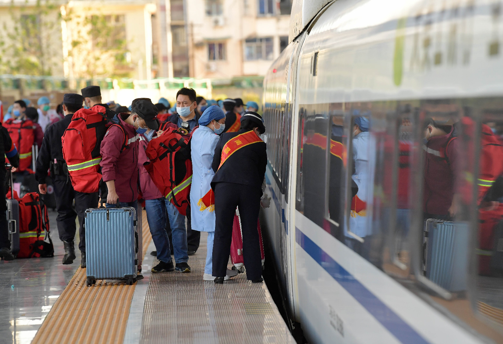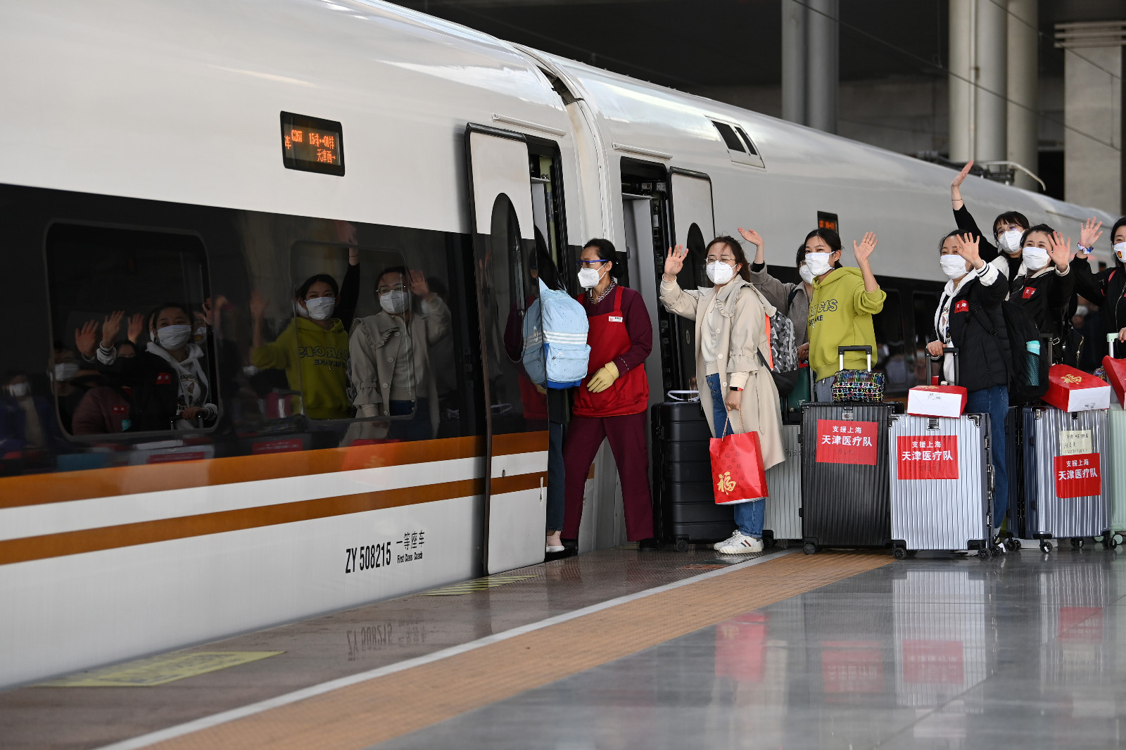 4日凌晨,來自浙江省的7261名醫務人員出發赴上海,支援上海開展全員核酸篩查。