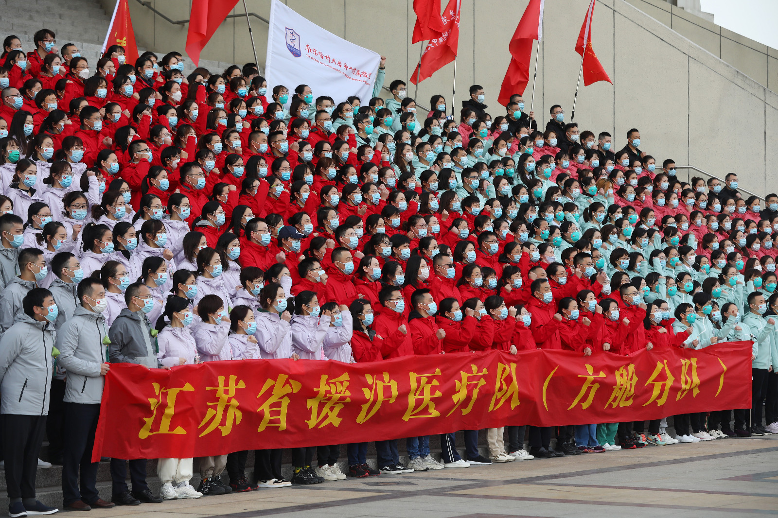 根據國務院聯防聯控機制醫療救治組要求,江蘇省4月4日派出7500名採樣隊員赴上海,開展核酸檢測採樣。