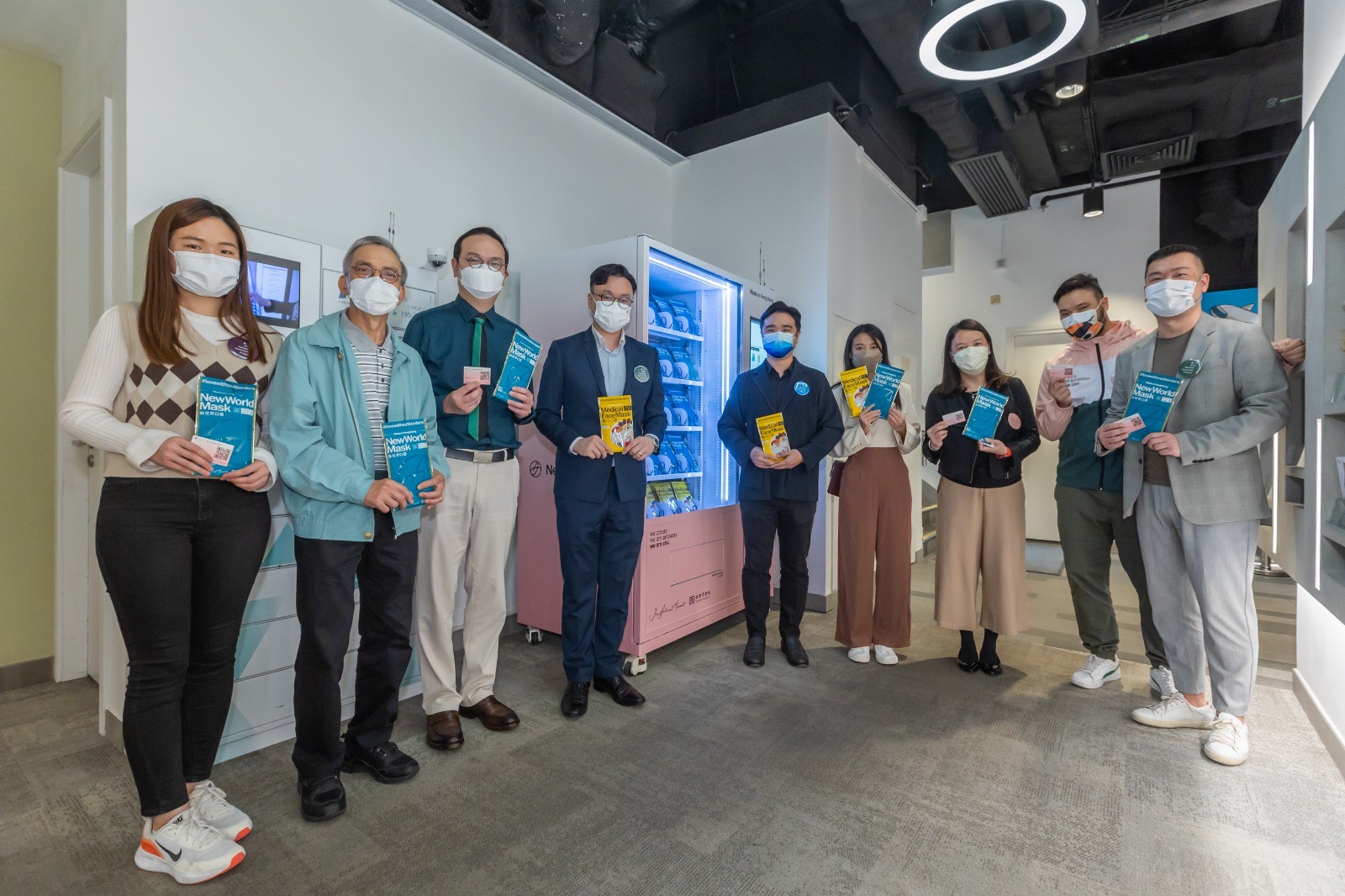 本港第五波疫情持續,新世界發展宣布與市區重建局(市建局)合作,於5個鬧市地點設置多部「自助口罩提取機」,並透過與3間非牟利合作機構,令受助者每周能方便簡易地免費提取口罩,計劃預計將有3000個基層家庭受惠。