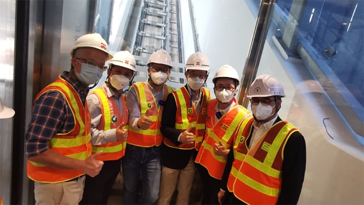 今早視察期間,有工程人員向他介紹,今次是本港首次在斜路興建公用升降機,指工程前後花費了三年時間,而依山而建的設計有助避免影響附近住宅景觀,兩部升降機每部可同時接載24人,興建期間亦無需要進行打樁工程。此外,電梯的按鍵更設有無接觸式設計,在抗疫方面亦有設計上的考慮。他關注等候乘搭電梯的位置會否溫度較高,建議考慮增設風扇。