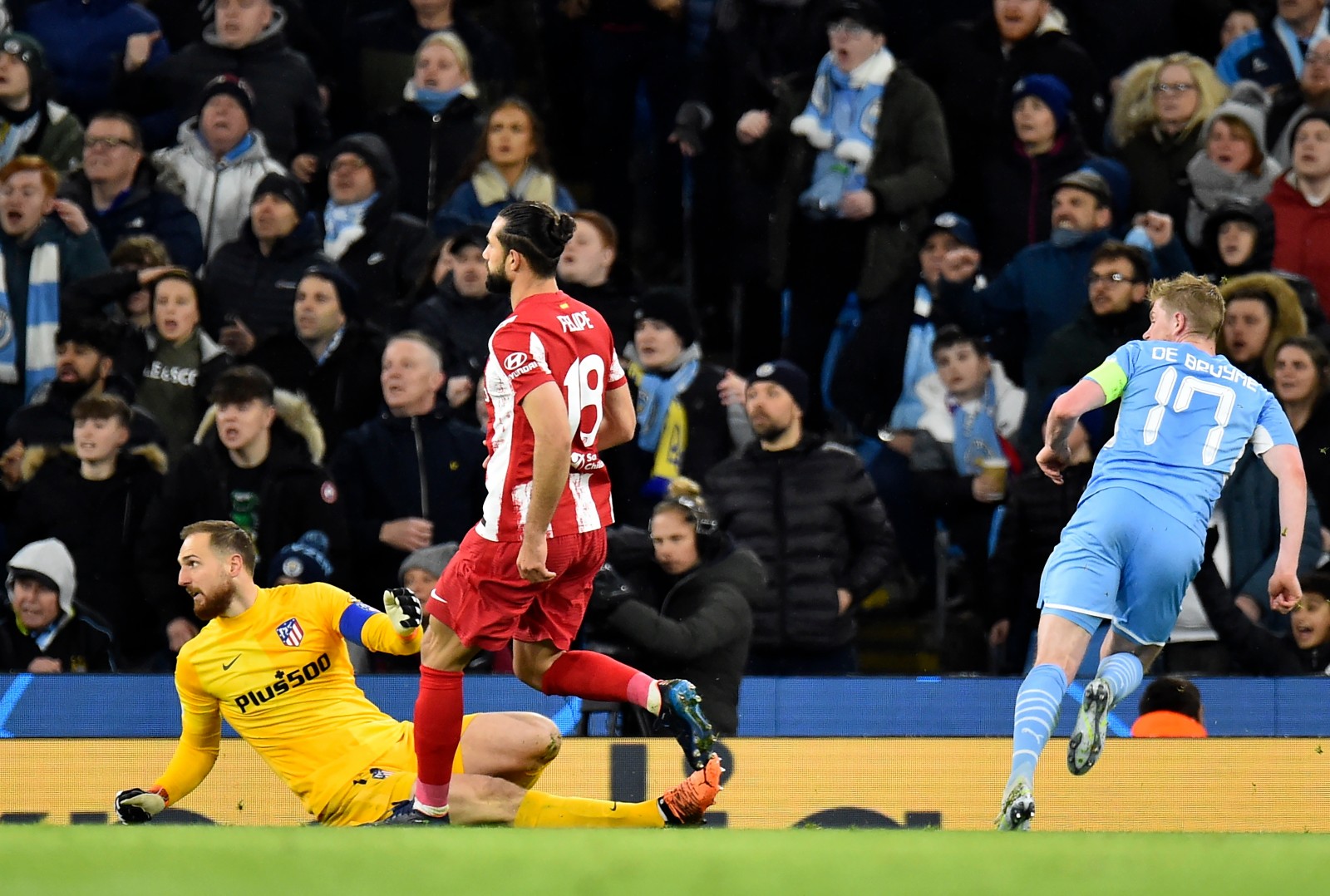 上半場,曼城控球時間占優,但對馬德里競技的密集防守卻無計可施。德布勞內、坎塞洛和拉波特均錯失了破門良機。