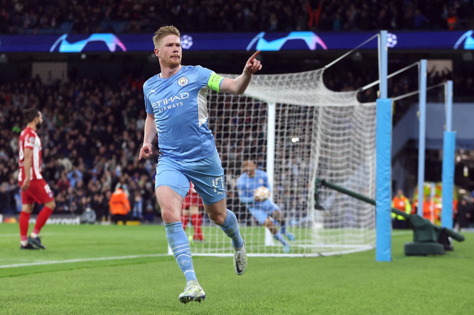 新華社倫敦4月5日電 在5日進行的2021-2022賽季歐冠足球聯賽四分之一決賽首回合比賽中,曼城主場1:0戰勝馬德里競技,比利時中場德布勞內打入全場唯一進球。