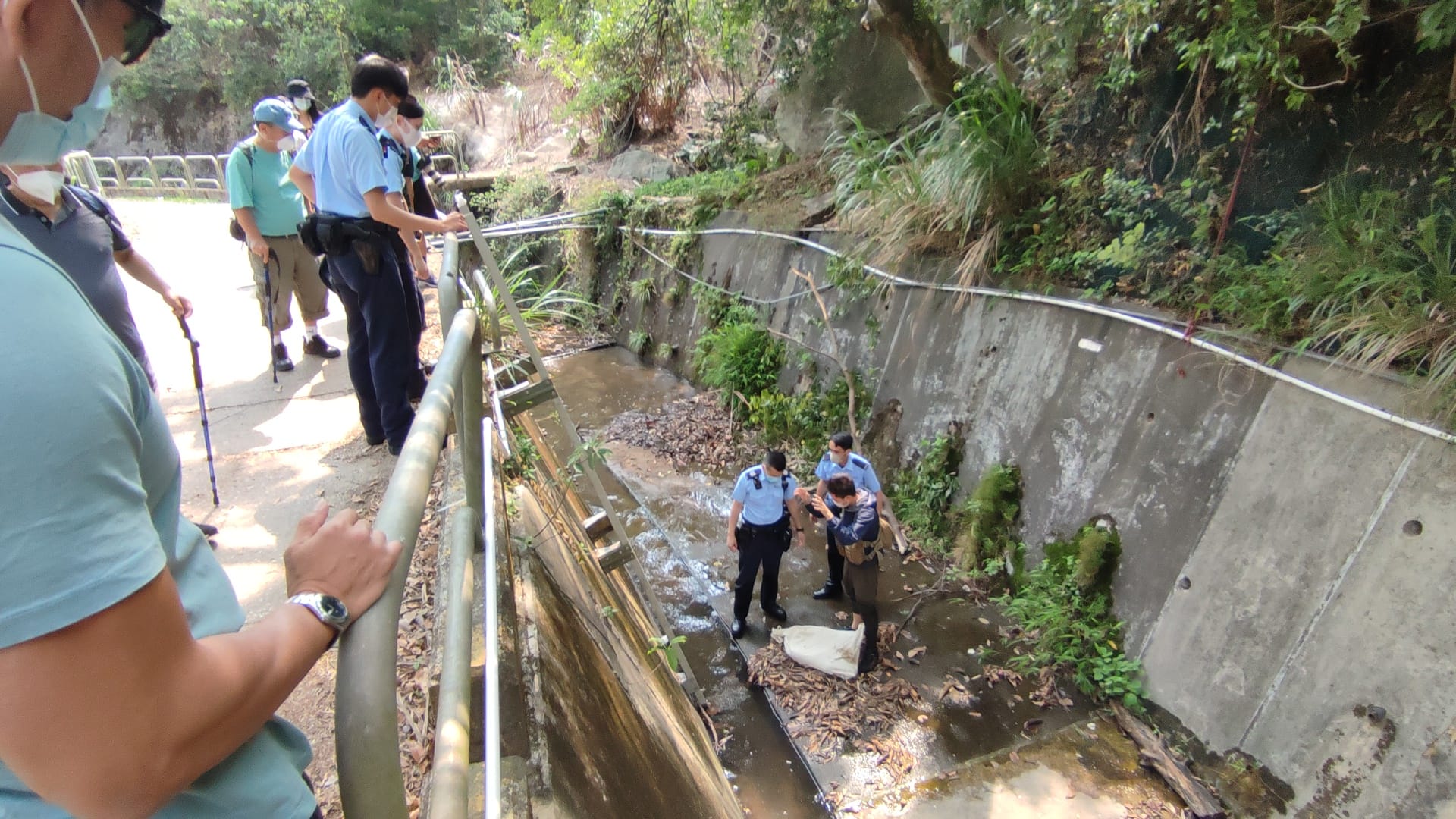 今日(7日)中午12時許,行山人士在荃灣芙蓉山一條引水道發現一條蟒蛇,頭部受傷在引水道內動彈不得,於是報警求助,警員到場尋獲蛇蹤,並召蛇王到場將其捉走。