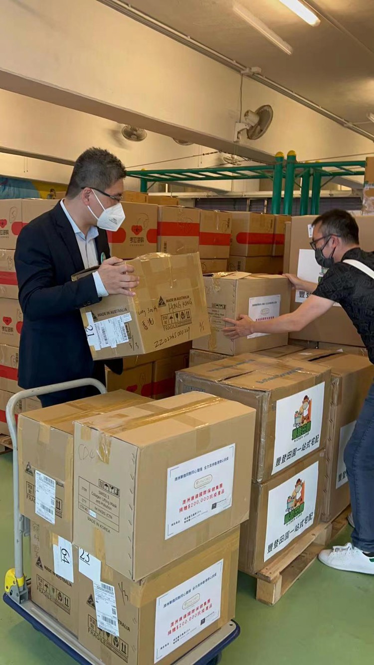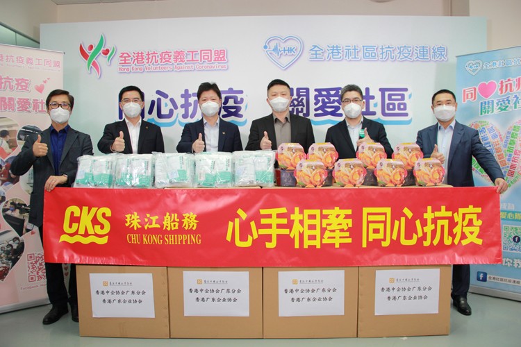 此外,粵海集團廣南行、珠江船務企業(集團)有限公司聯合捐出1800盒自熱食品及50萬成人外科口罩;豐登田園有限公司捐贈4萬口罩和1500套快速測試劑;澳洲康道國際保健集團捐出總值20萬港元的抗疫產品。