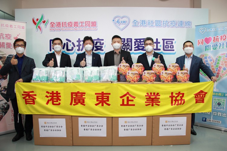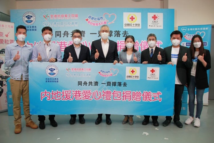 「全港抗疫義工同盟」、「全港社區抗疫連線」與「灣區安全應急產業創新聯盟」於3月4日共同發起「同舟共濟 一齊撐落去」愛心禮包捐贈大行動,獲逾20家內地愛心企業積極回應、踴躍參與,已捐贈約2.5億元人民幣物資。當中的「防疫愛心禮包」42000箱,以及援港新冠抗原試劑1000萬支。每份「防疫愛心包」的內容包括:檢測試劑盒、P2 或 KN95 口罩、一次性醫用口罩、兒童口罩、可重複使用透明面罩、一次性醫用手套,還包括方便麵、罐頭等食品。首批2萬份「防疫愛心禮包」已經運抵本港,並經「香港社福界聯合抗疫大行動」派送到各社區予有需要人士。