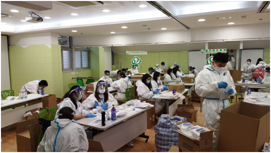 3月30日及31日,接近30名義工參與了政府「防疫包」的包裝活動。在眾多義工的齊心協力之下,大窩口體育館這個工作點用了短短2天時間,就完成了原計劃需時3天的包裝工作。而早前,新界青年聯會發起「新青聯與你齊心抗疫」活動,也有近30名從網上招募的義工參與,協助包裝了將近6000個「防疫包」,並派送「防疫包」到長安邨部分確診者的家中。