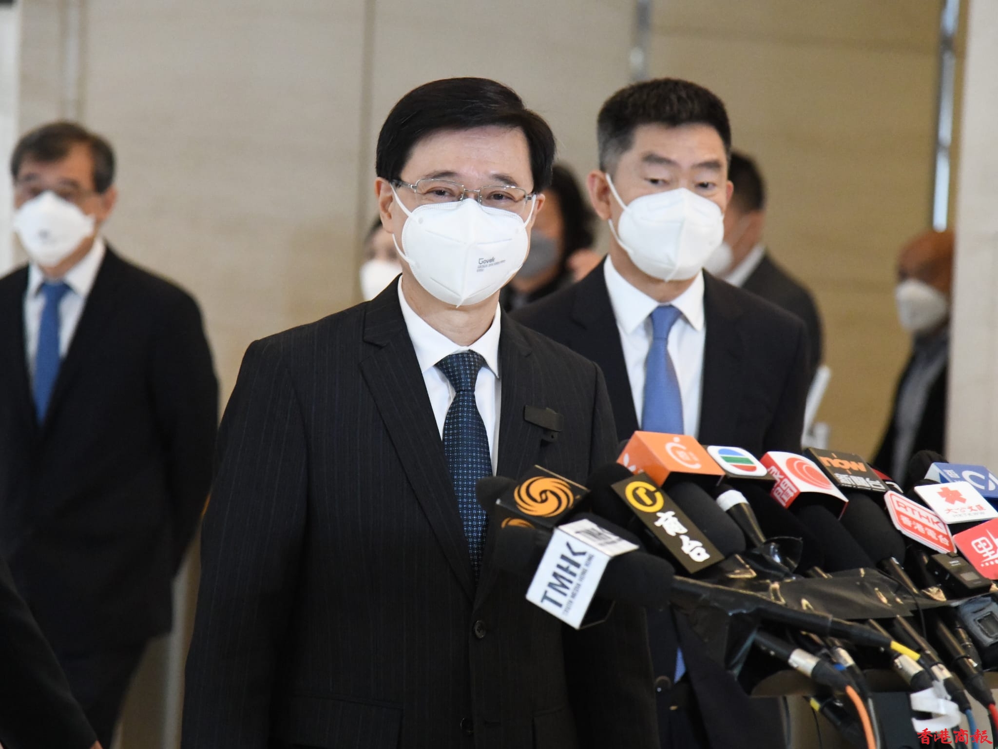 宣布參選第六屆行政長官的李家超正展開競選工作,他表示,截至今日(12日)6時,已爭取到700多張提名票,決定將於明日(13日)前往報名參選。李家超昨日(11日)及今日(12日)先後與多個政黨及團體會面,爭取支持。李家超今早與香港中國企業協會會面後見記者時表示,他在會上解釋了三大施政方向,感謝對方同意及支持其施政理念。