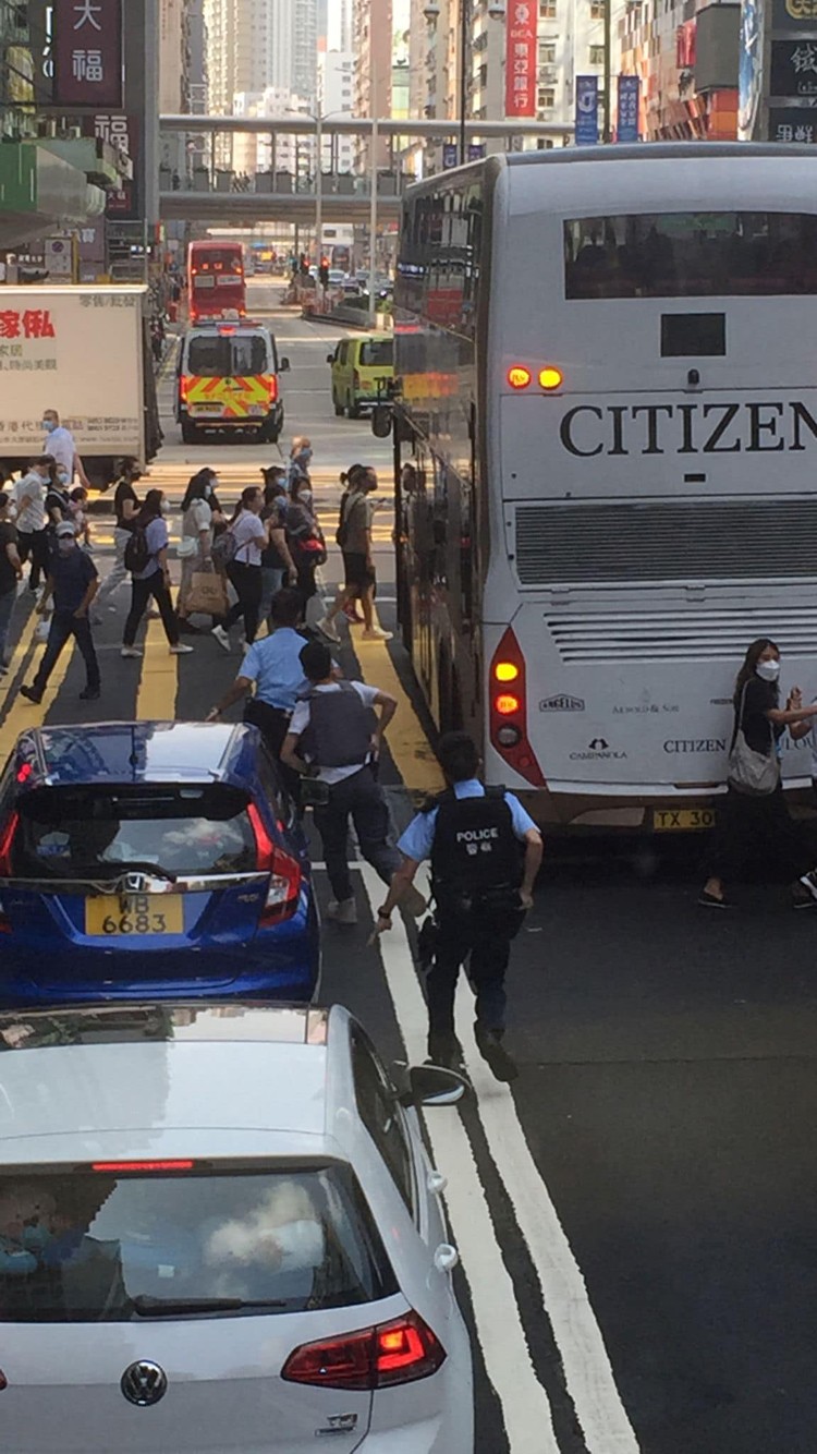 今午(14日)3時許,一名男子闖入旺角彌敦道556號一間銀行,手持一支手槍指嚇職員聲稱打劫,職員見狀不敢妄動,暗中按動警鐘,賊人掠走約2萬元現金後得手逃去,警方接報大為緊張,大批衝鋒隊人員穿上避彈衣和防彈頭盔,荷槍實彈到場,現時仍在現場搜捕。(記者區天海)