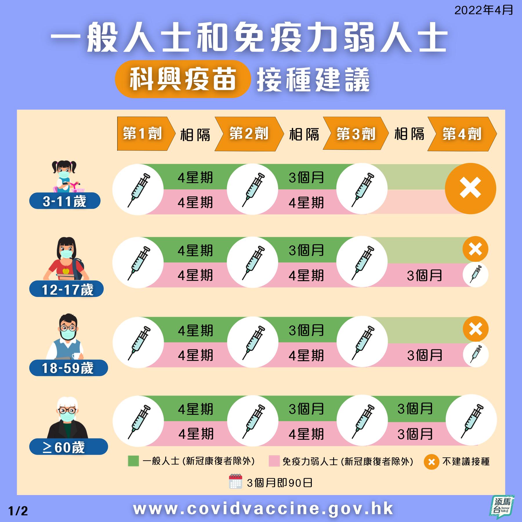 聶德權表示,專家亦建議已打3針的60歲或以上長者,在接種最後一劑疫苗滿3個月後,接種額外一劑,即第4針,以加強保護。