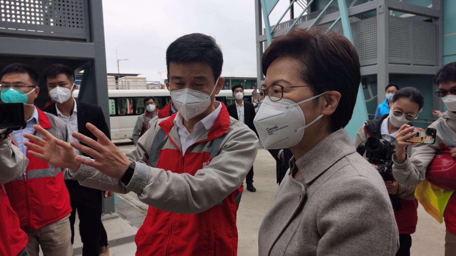本港第五波疫情明顯呈下降趨勢,持續回穩。今日(19日)下午,中央援建的竹篙灣社區隔離設施第一階段工程完工,並於今日交付特區政府。行政長官林鄭月娥下午到場驗收並出席交接儀式,香港中聯辦副主任羅永綱、食物及衞生局局長陳肇始、發展局局長黃偉綸及保安局局長鄧炳強亦有到場。