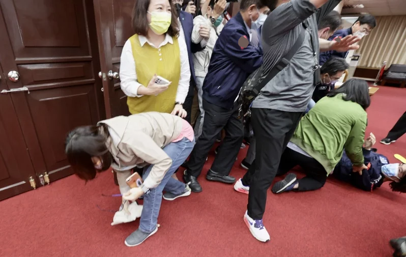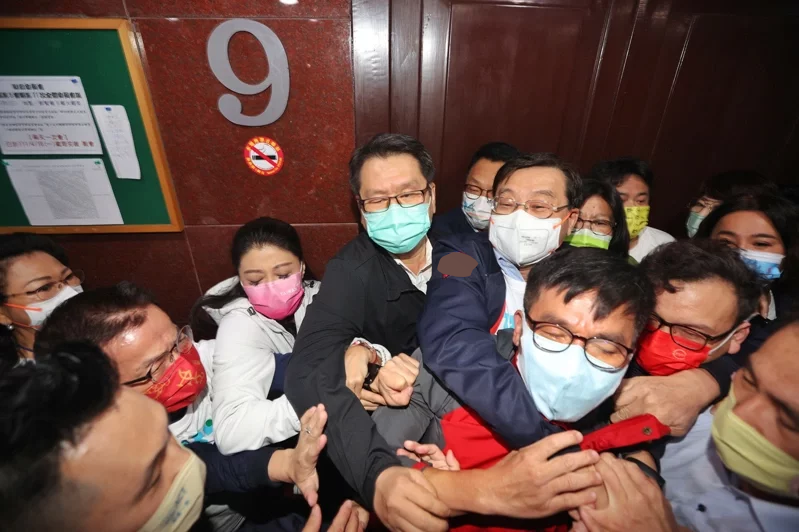 清晨6時半,會議室門一開,藍綠立委一擁而上,奮力衝向主席台,雙方爆發激烈衝突。民進黨立委鍾佳濱一度被鎖喉。國民黨立委陳玉珍和民進黨立委王美惠還不慎跌倒,接着上演搶麥克風大戰,場面相當混亂。
