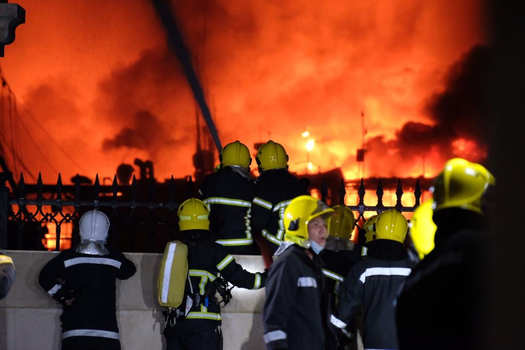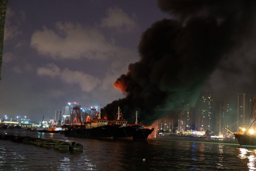 澳門消防、海關、海事局都已出動到場救援,內港岸邊有數十架消防救援車輛戒備。消息指,晚上8時許,一艘內地海警船駛至現場協助救火。