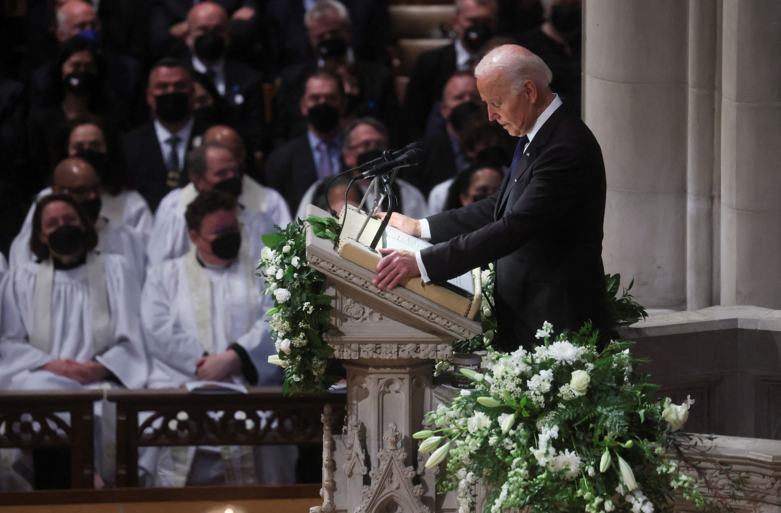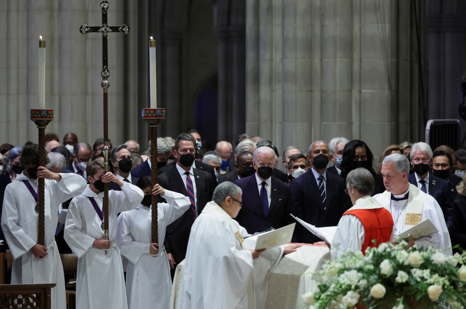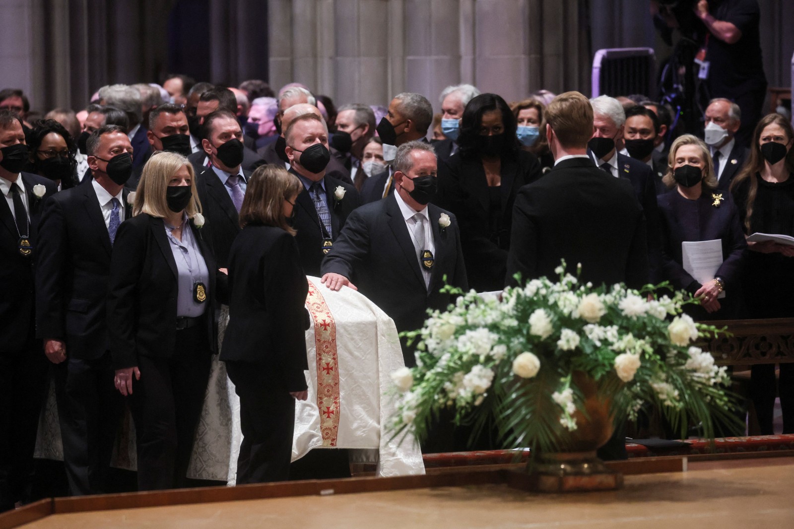 上月逝世美國首位女國務卿奧爾布賴特的喪禮,當地時間27日在華盛頓國家大教堂舉行,多名現任和前任國家領導人和國會議員出席。總統拜登、前總統奧巴馬、委任奧爾布賴特為國務卿的前總統克林頓,以及多名前任和現任美國高層官員和國會議員都有出席。