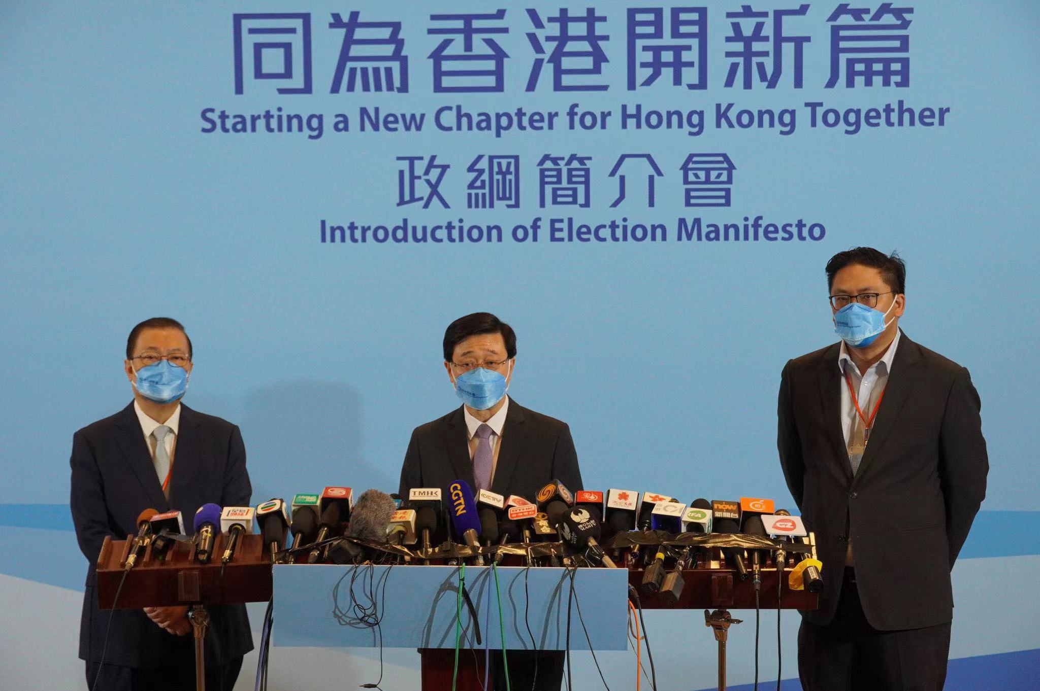 他介紹,政綱有四個綱領,第一是強化政府治理能力;第二是土地和房屋供應方面提速、提效、提量;第三提升香港競爭力,强调持續發展;第四是建立關愛社會,重視青年發展。