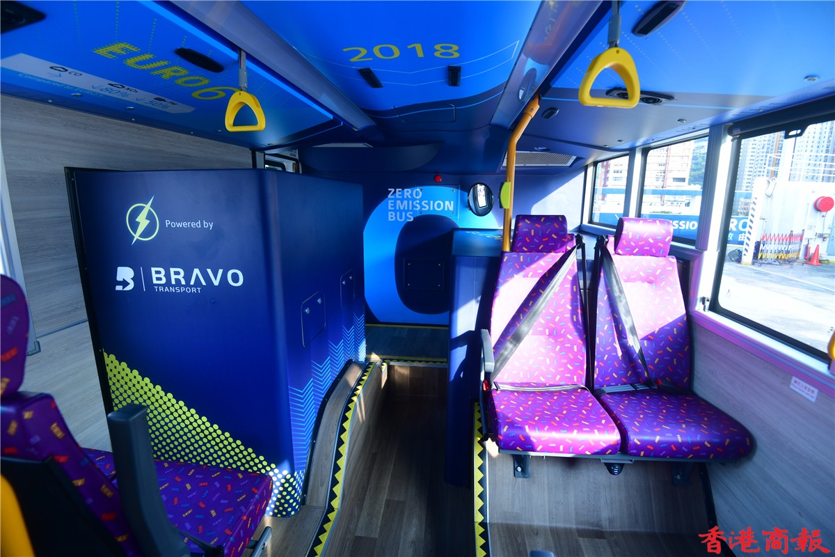 電動雙層巴士上層及下層空間一覽。記者 崔俊良 攝