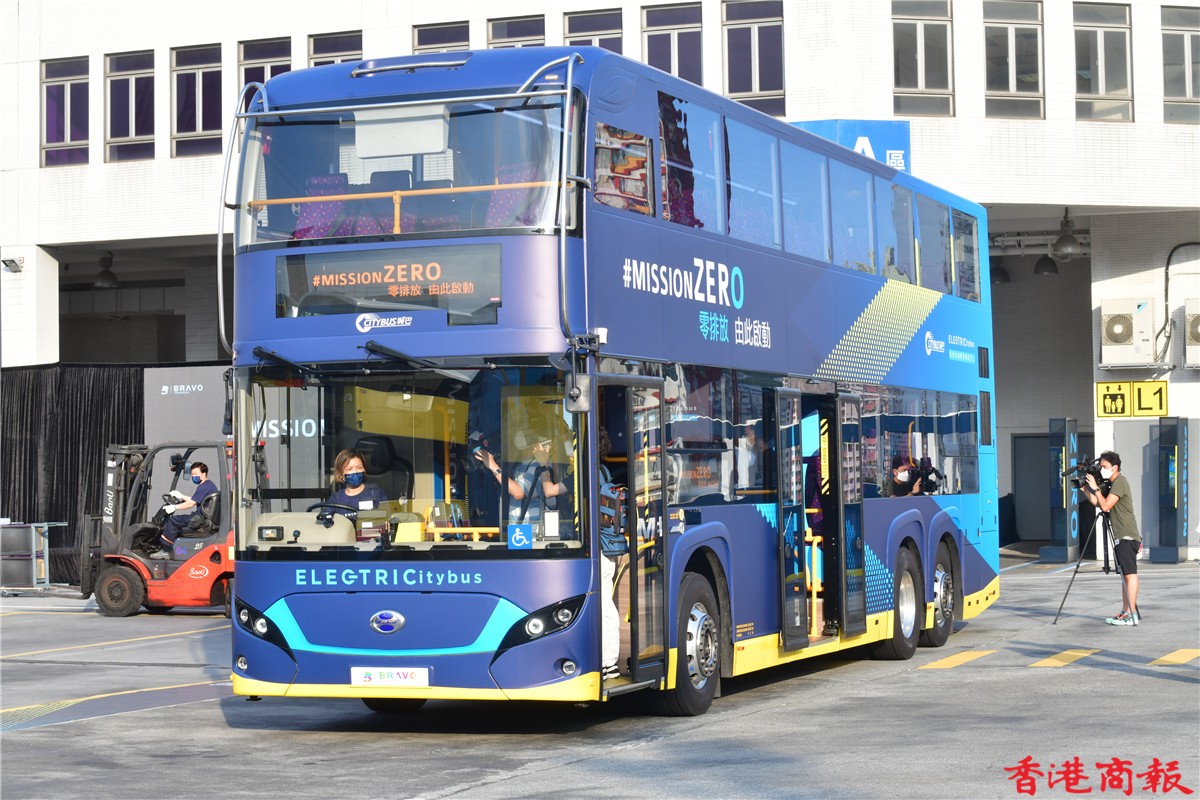 城巴母公司匯達交通今日(29日)宣布,下月起試行全港首架電動雙層巴士,預料最快於暑假正式投入服務,行走城巴5B或22M號線。行政長官林鄭月娥在啟動儀式上表示,很高興看到全港第一輛電動雙層巴士正式啟用,這無疑是香港公共交通史上一個重要的里程碑,相信不久將來會有更多電動巴士在香港馬路上行走。