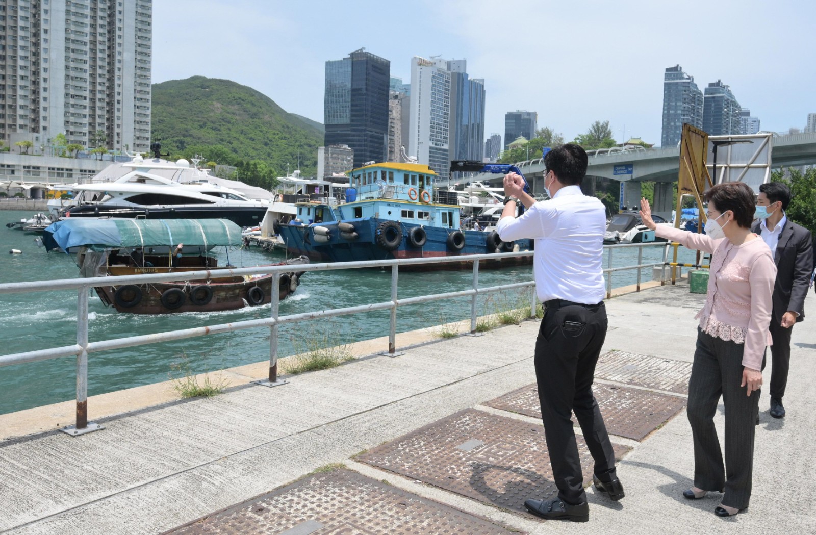 行政長官林鄭月娥今日(5日)到訪南區黃竹坑和鴨脷洲,了解「躍動港島南」計劃的最新進展。