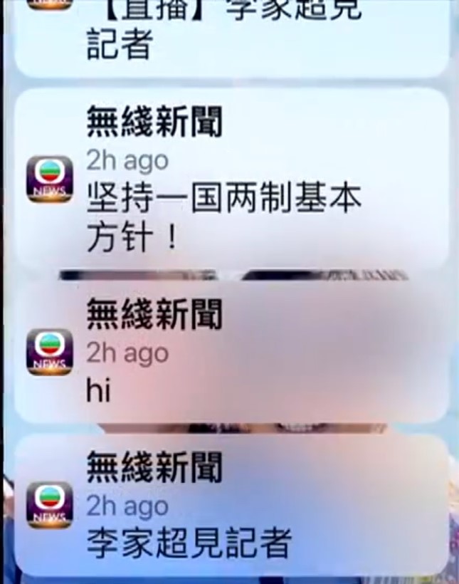 據悉,當日出現首個奇怪信息是一個網址,有指是無綫新聞推送信息網址,其後奇怪信息開始出現,包括「【直播中】李家超見記者」、「堅持一國兩制基本方針」、「hi」及「李家超見記者」等。(記者 區天海)
