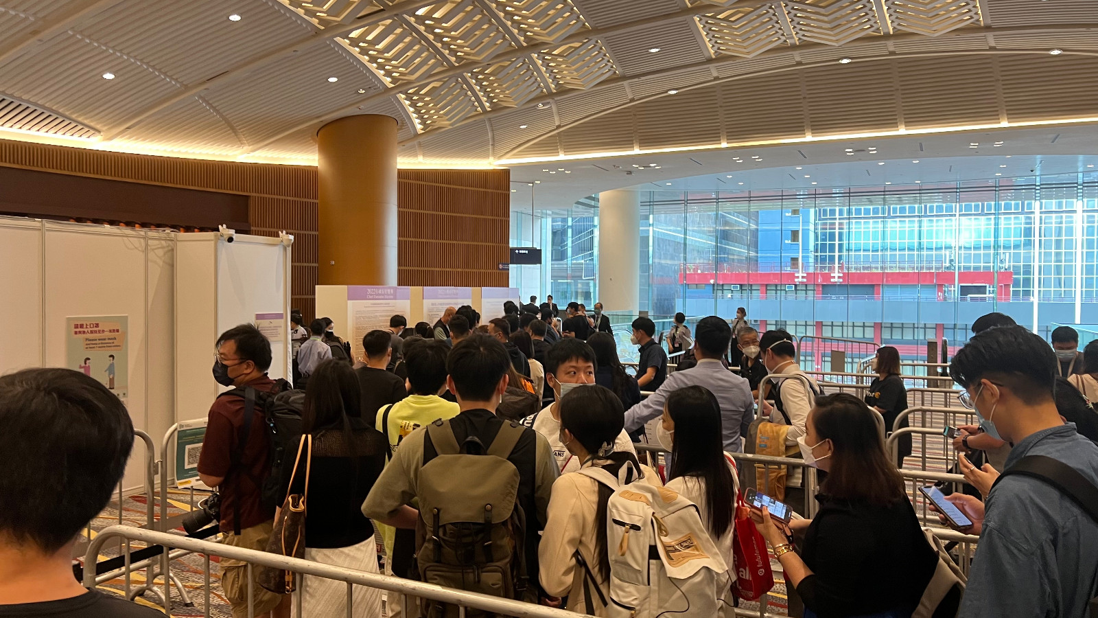 設置於會議展覽中心的行政長官選舉主投票站及中央點票站7時才開放進場,今早不到7點,會展外已經大排長龍。有的記者昨天就過來排隊,路上各個地方也多了很多警察巡視。(記者 木子 郭玉桔)