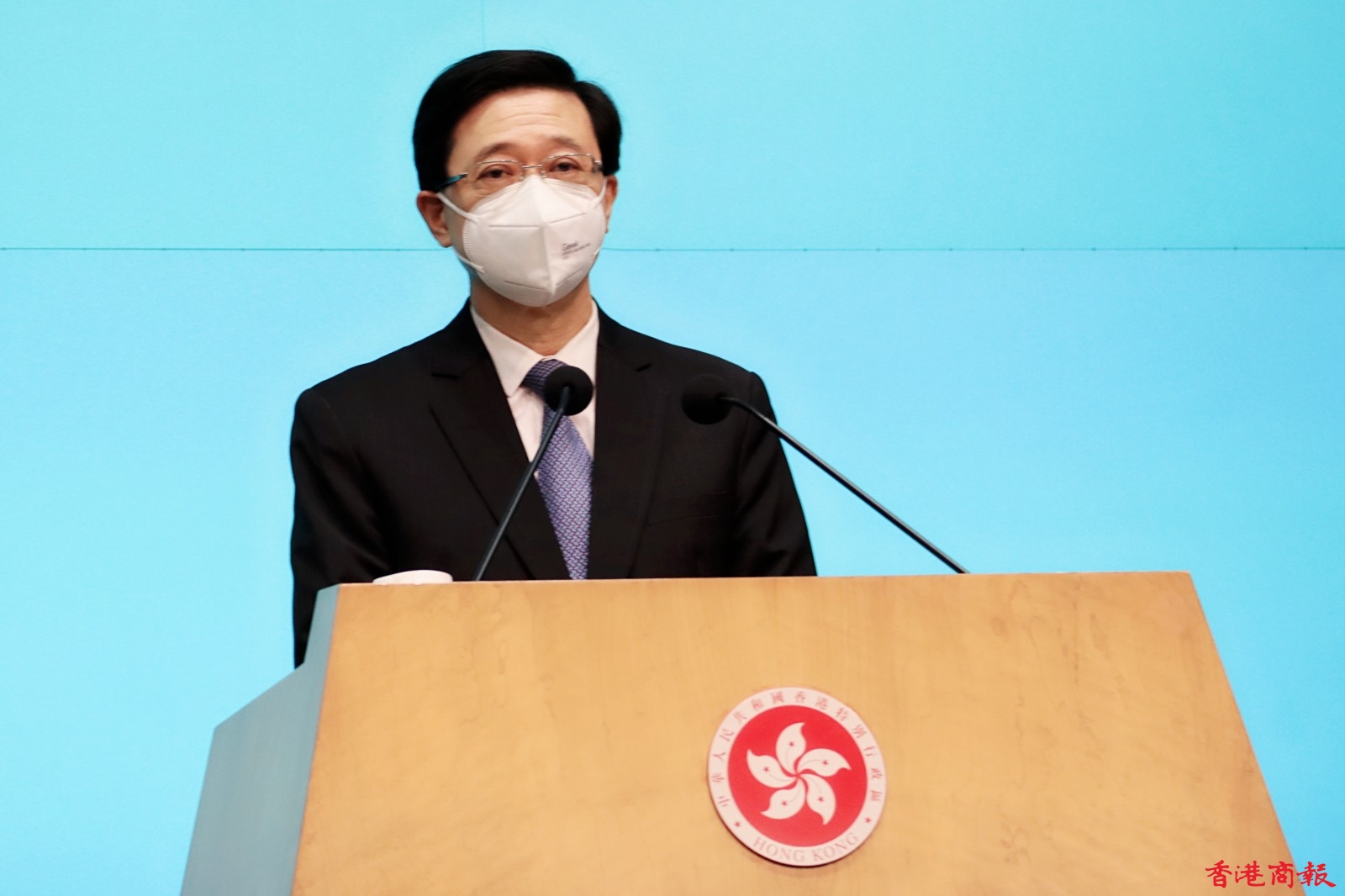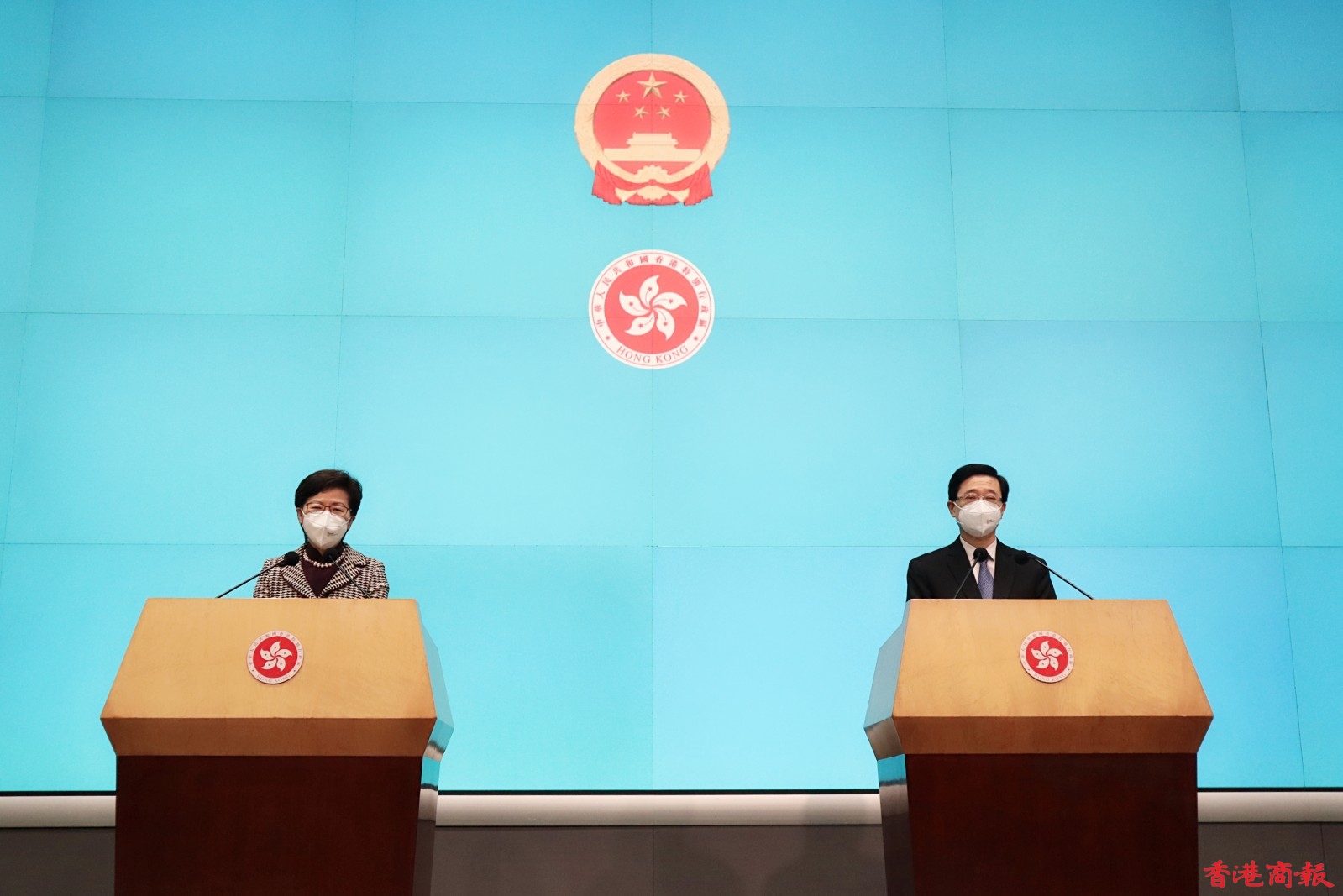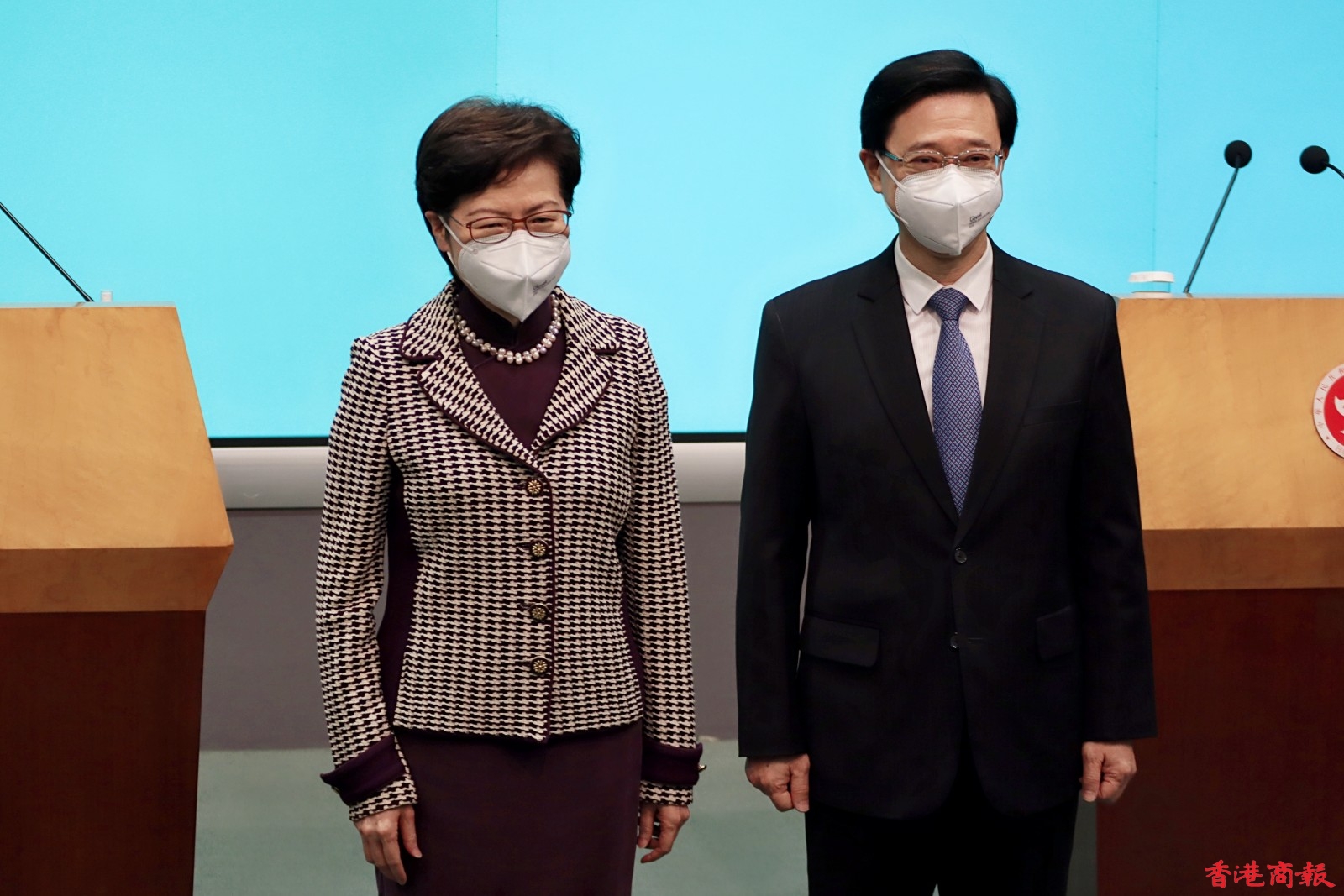 李家超昨日(8日)以1416票當選為香港特區第六任行政長官候選人,行政長官林鄭月娥今日(9日)早上在行政長官辦公室與李家超會面,兩人其後於10時30分在政府總部見傳媒。林鄭表示,餘下任期會為新一屆政府就任提供一切所需協助,包括會在最快時間內完成重組政府架構的相關程序,並會繼續穩控疫情,為與內地通關創造條件,讓市民開心迎接香港回歸25周年。