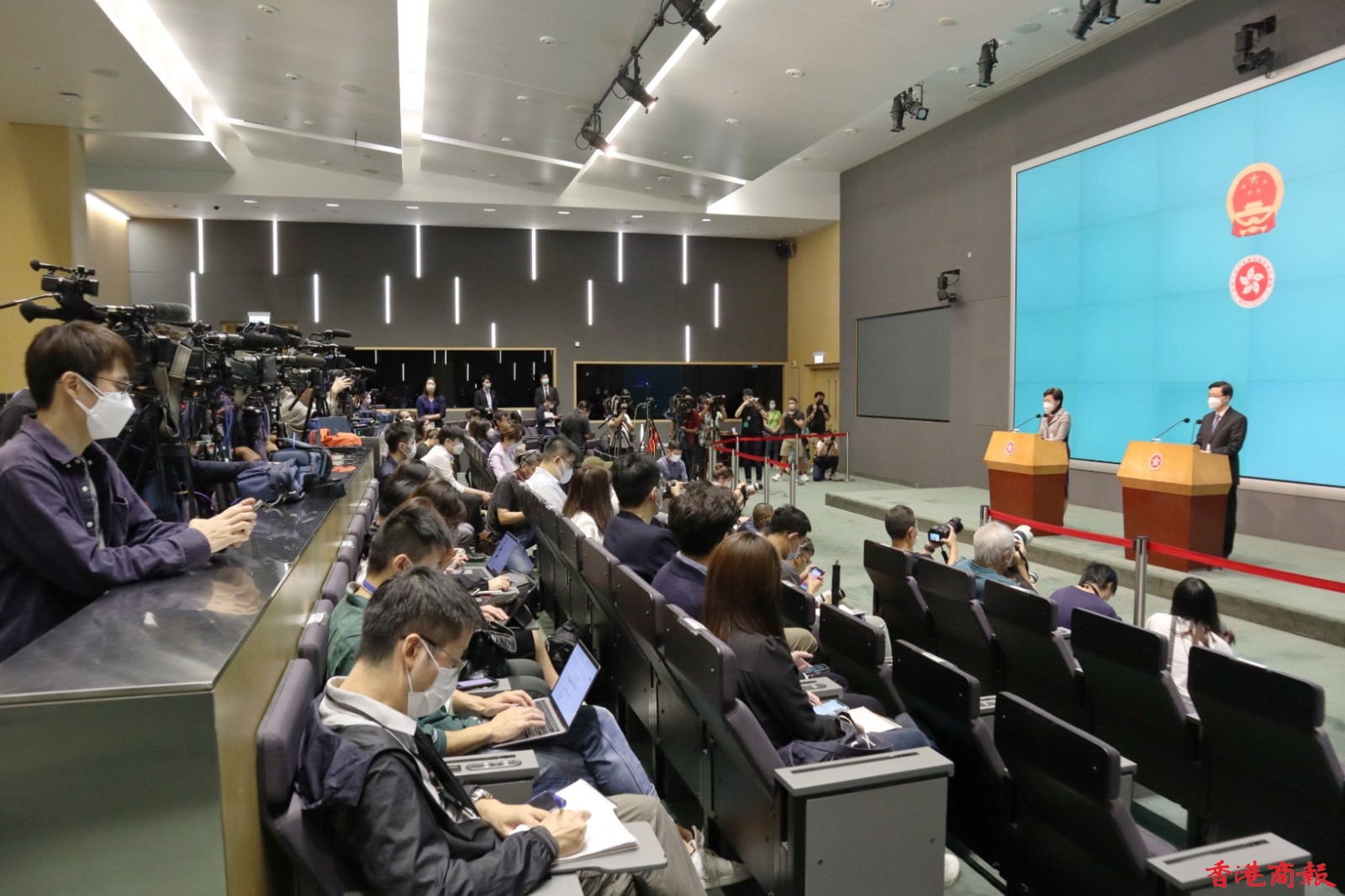 林鄭月娥及李家超會面後見記者。記者馮瀚文 攝