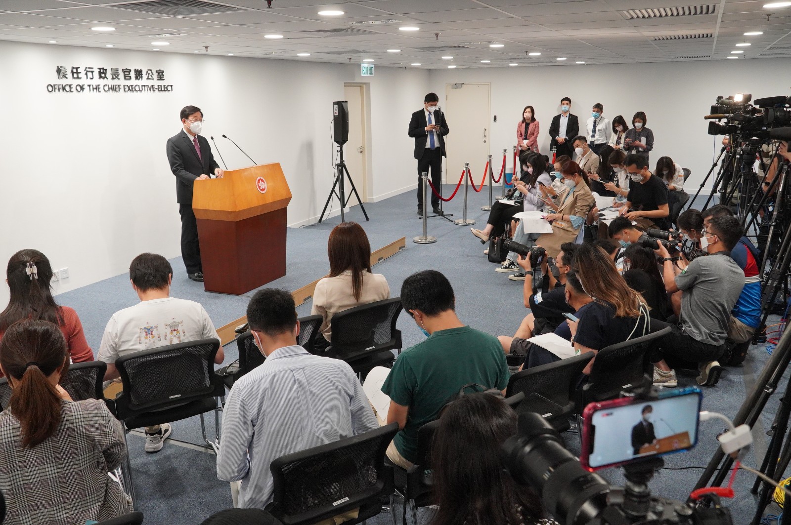 行政長官當選人李家超於候任行政長官辦公室會見傳媒。記者 俊文攝