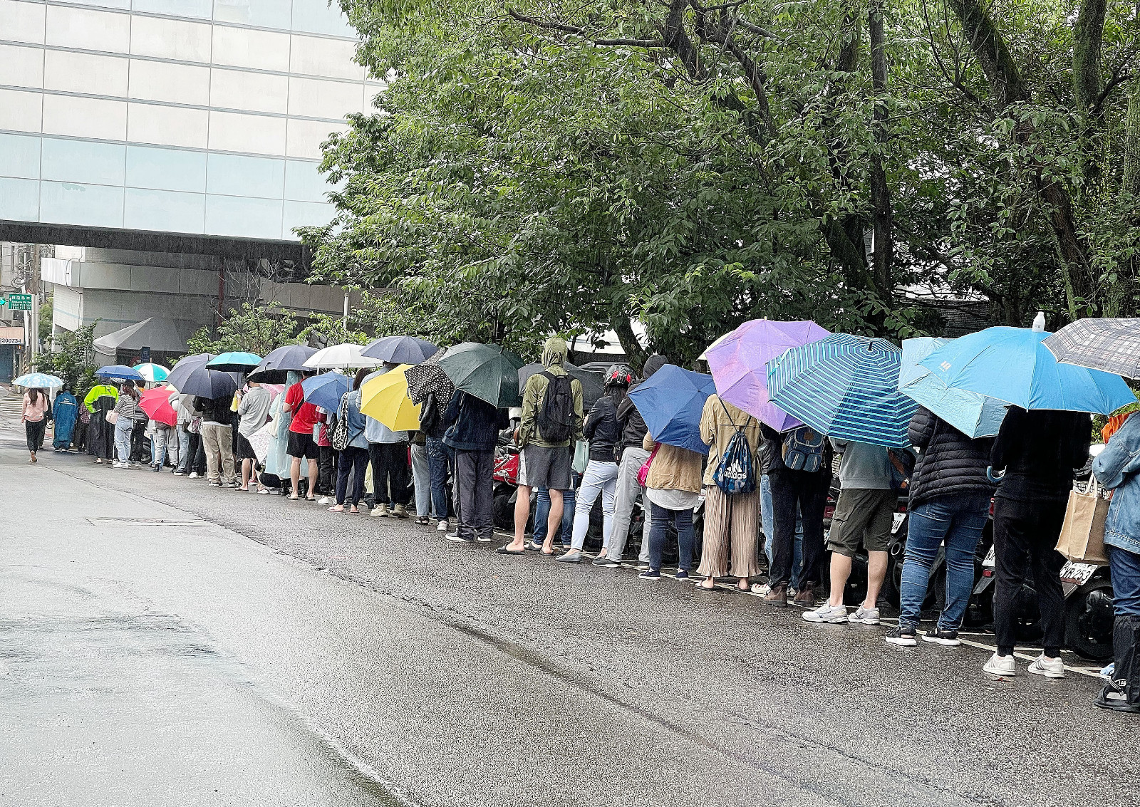台灣醫療系統吃緊,防疫物資更是缺乏,從口罩、疫苗、抗病毒藥物到近期民眾必須到街頭排隊搶購快篩試劑。此外,醫療量能持續緊繃,各大醫療院所的PCR得來速、疫苗接種站人滿為患。(圖源 中央社)