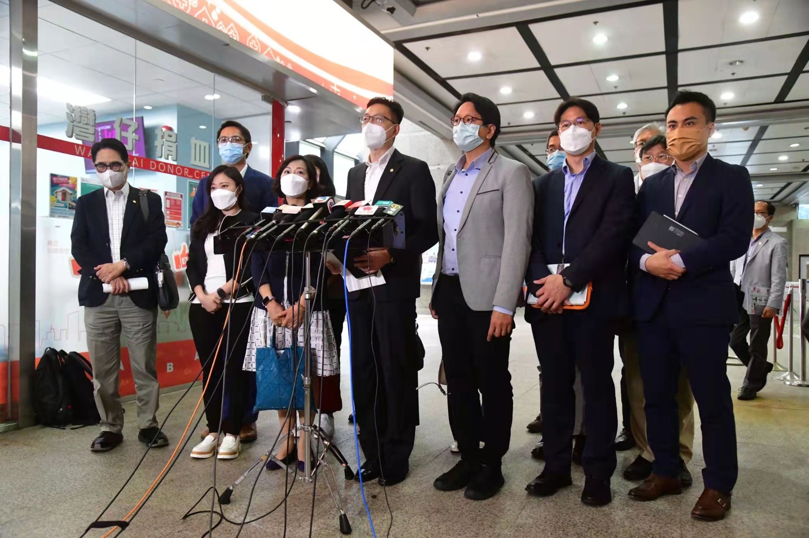 工聯會多位成員與行政長官當選人李家超會面,會後會見傳媒。記者崔俊良 攝