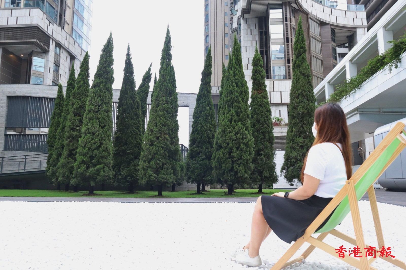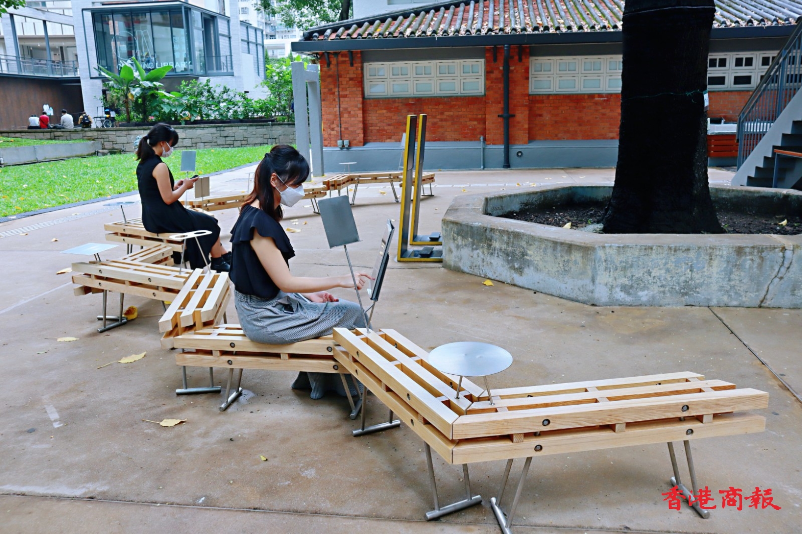 「賞森.悅木」則由美國著名建築團隊Diller Scofidio + Renfro創作。一組以樹為主題的動力裝置,為公眾提供休憩空間,並讓參觀者感受「非自然之自然」。(馮瀚文 攝)