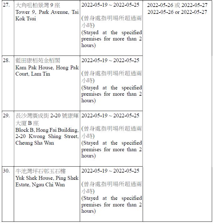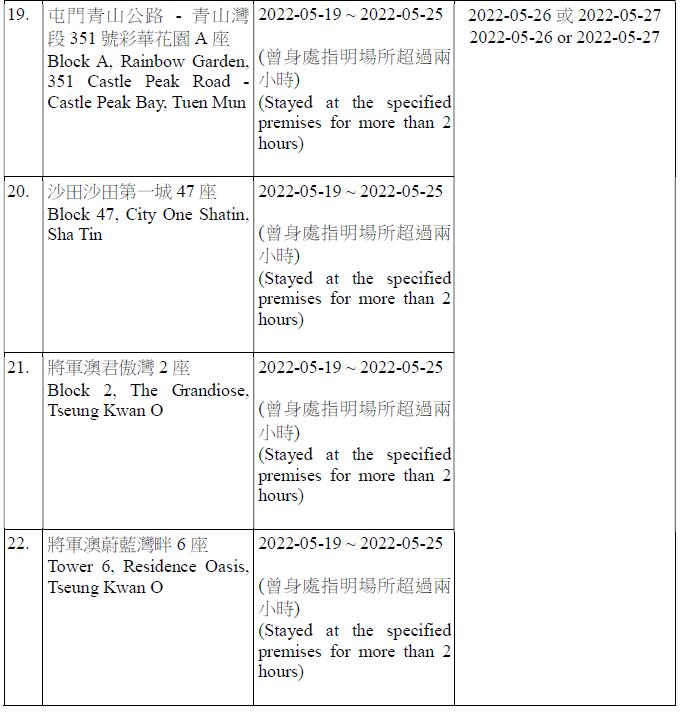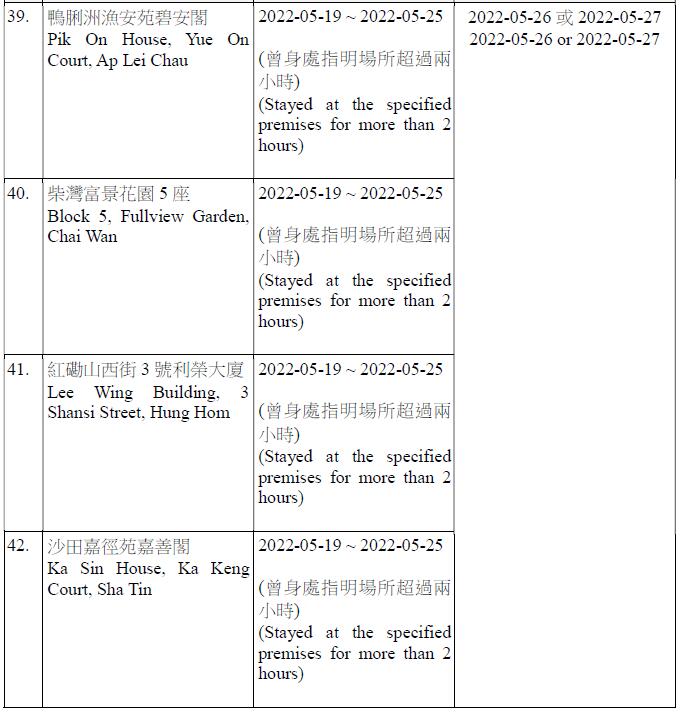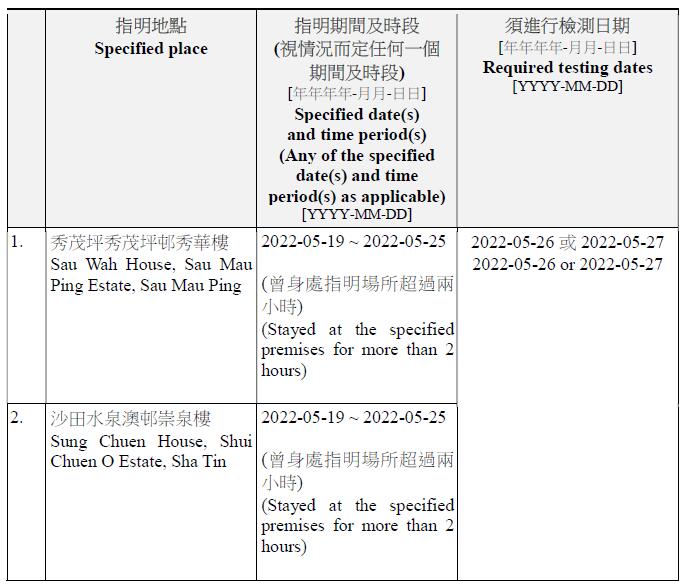 因應多宗陽性檢測個案,港府今晚(25日)就強制檢測公告刊憲,要求於指定期間曾身處42個指明地方的人士,接受核酸檢測,包括秀茂坪秀茂坪邨秀華樓、沙田水泉澳邨崇泉樓、荃灣象山邨翠山樓、北角天后廟道95-97號康德大廈、青衣藍澄灣5座、沙田晉名峰C座、將軍澳尚德邨尚義樓、青衣曉峰園3座及牛頭角淘大花園A座等。