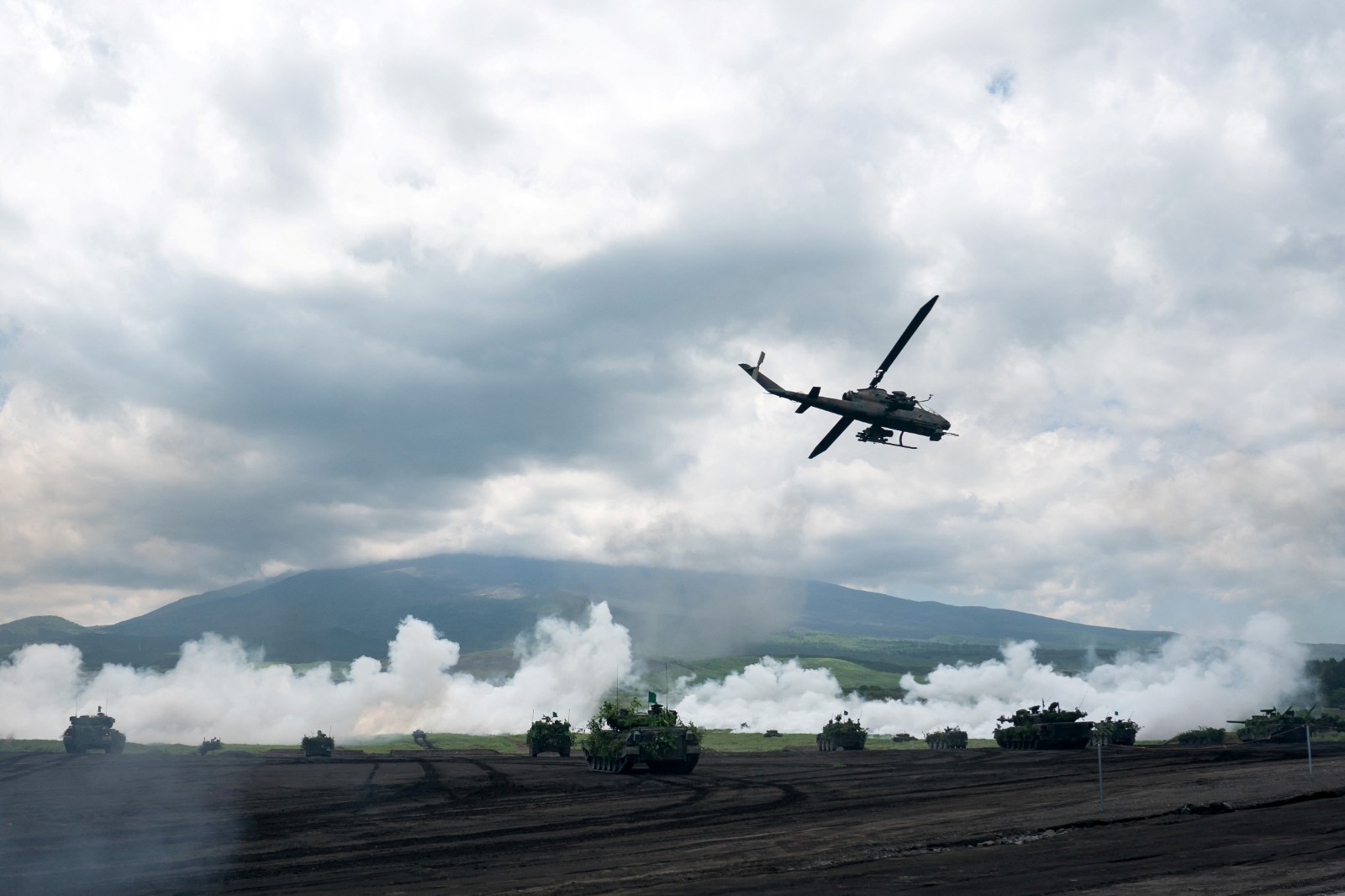 據了解,此次「富士綜合火力演習」以離島防衛為目的,是日本陸上自衛隊在該演習場進行的最大規模的實彈演習,共計約3300人參加。(圖源路透社)